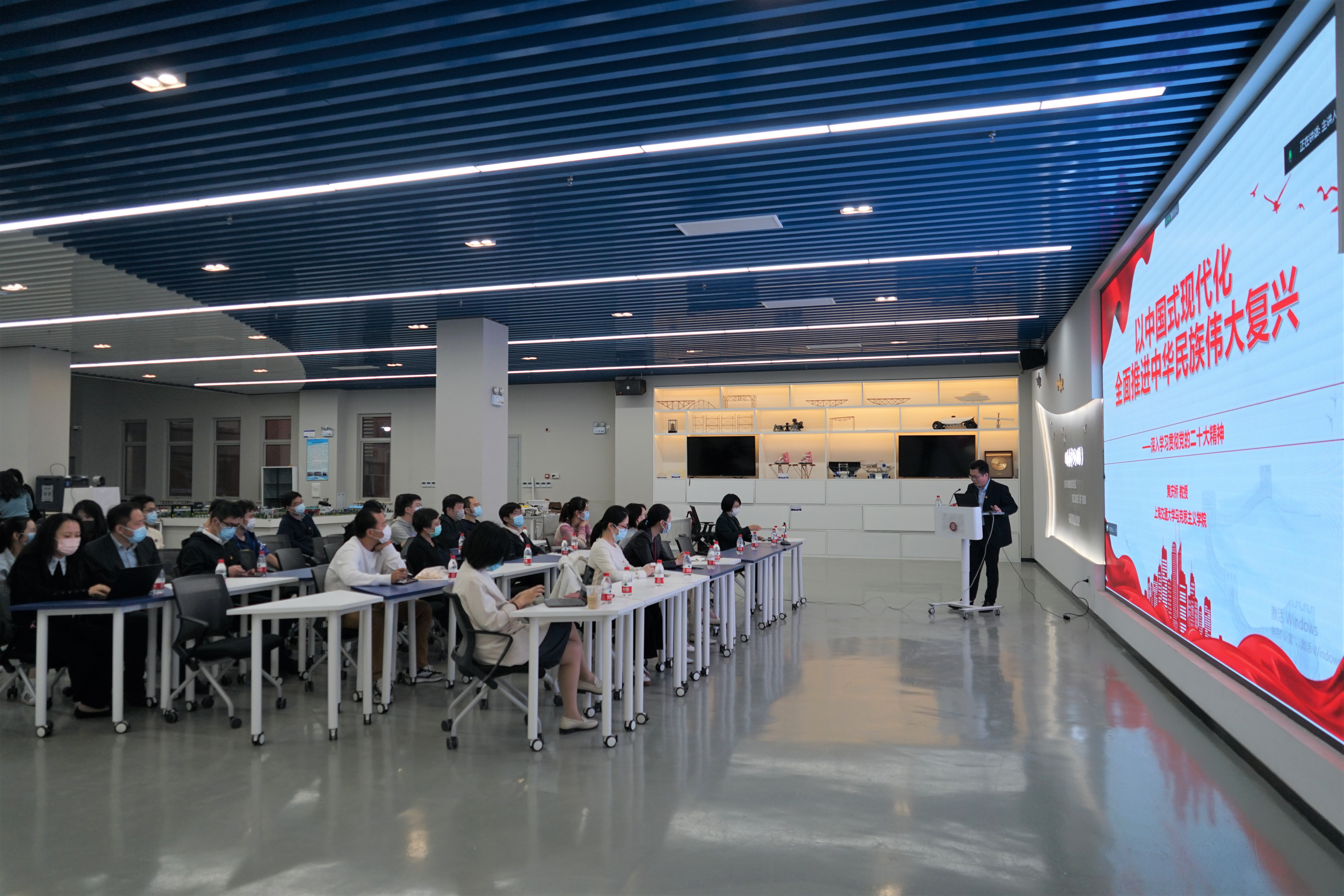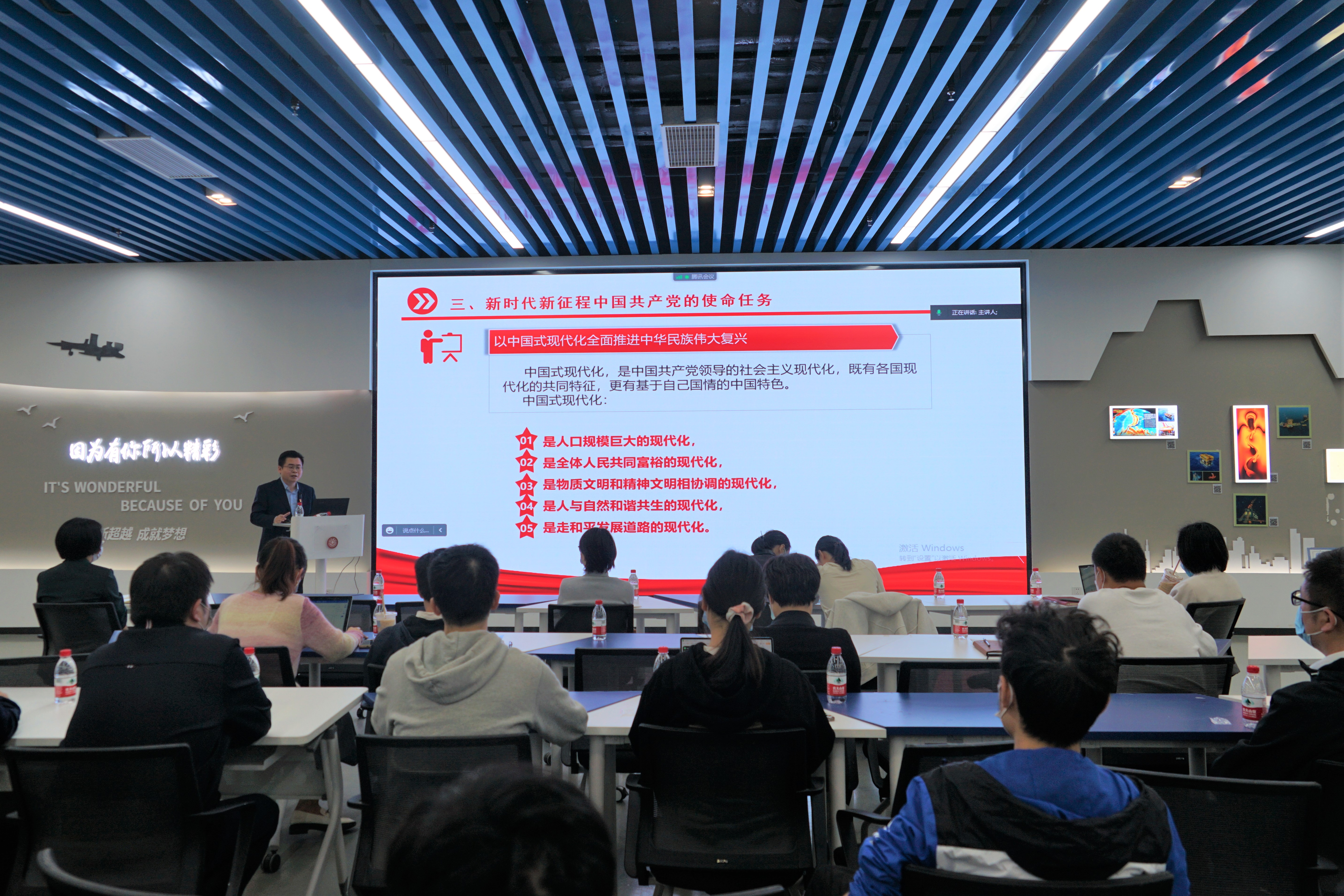 为深入学习贯彻党的二十大精神,10月26日下午,大象传媒 、海洋学院、海装基地、网络信息中心联合自然资源部第二海洋研究所海底科学重点实验室党总支和中国极地研究中心(中国极地研究所)等举办学习活动,邀请大象传媒 马克思主义学院黄庆桥教授做题为《以中国式现代化全面推进中华民族伟大复兴——深入学习贯彻党的二十大精神》的主题讲座。讲座线上线下同步进行,大象传媒 党委书记周薇、党委副书记王喜芳、网络信息中心党总支副书记周子豪、海洋学院党总支副书记汪佳莹等部分单位师生代表于木兰楼100号主会场参会,同时各单位分别设置分会场,线上师生员工逾400人参与本次主题学习活动。
