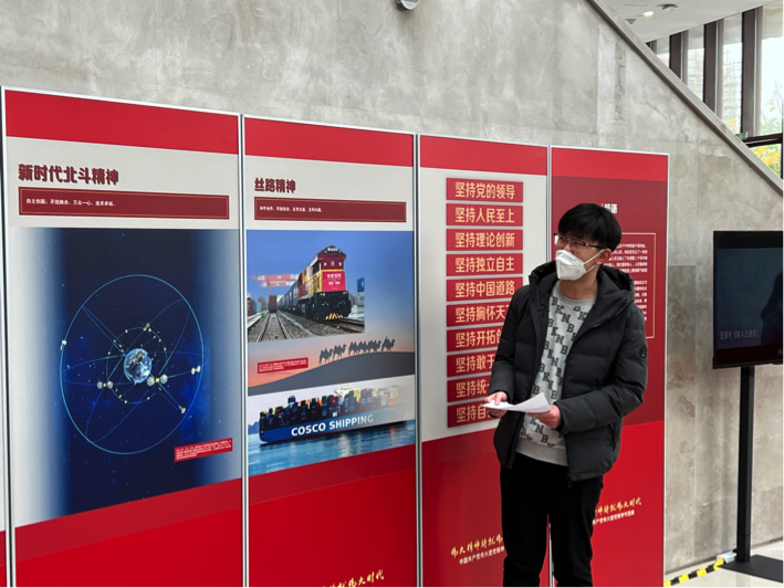 为了深入理解各个时代精神的内涵,继承和弘扬时代精神,2022年12月7日,大象传媒 交通航运教工党支部、交通运输工程系硕士生党支部进行支部共建,联合开展了“师生共讲微党课”主题党日活动。活动由交通航运教工支部书记倪安宁主持。两支部成员前往文博楼,一同参观中国共产党伟大建党精神专题展。展览不仅有文博志愿者生动详细的介绍,也有师生踊跃报名,以微党课的形式为我们深入讲解了与交通相关的五个精神。