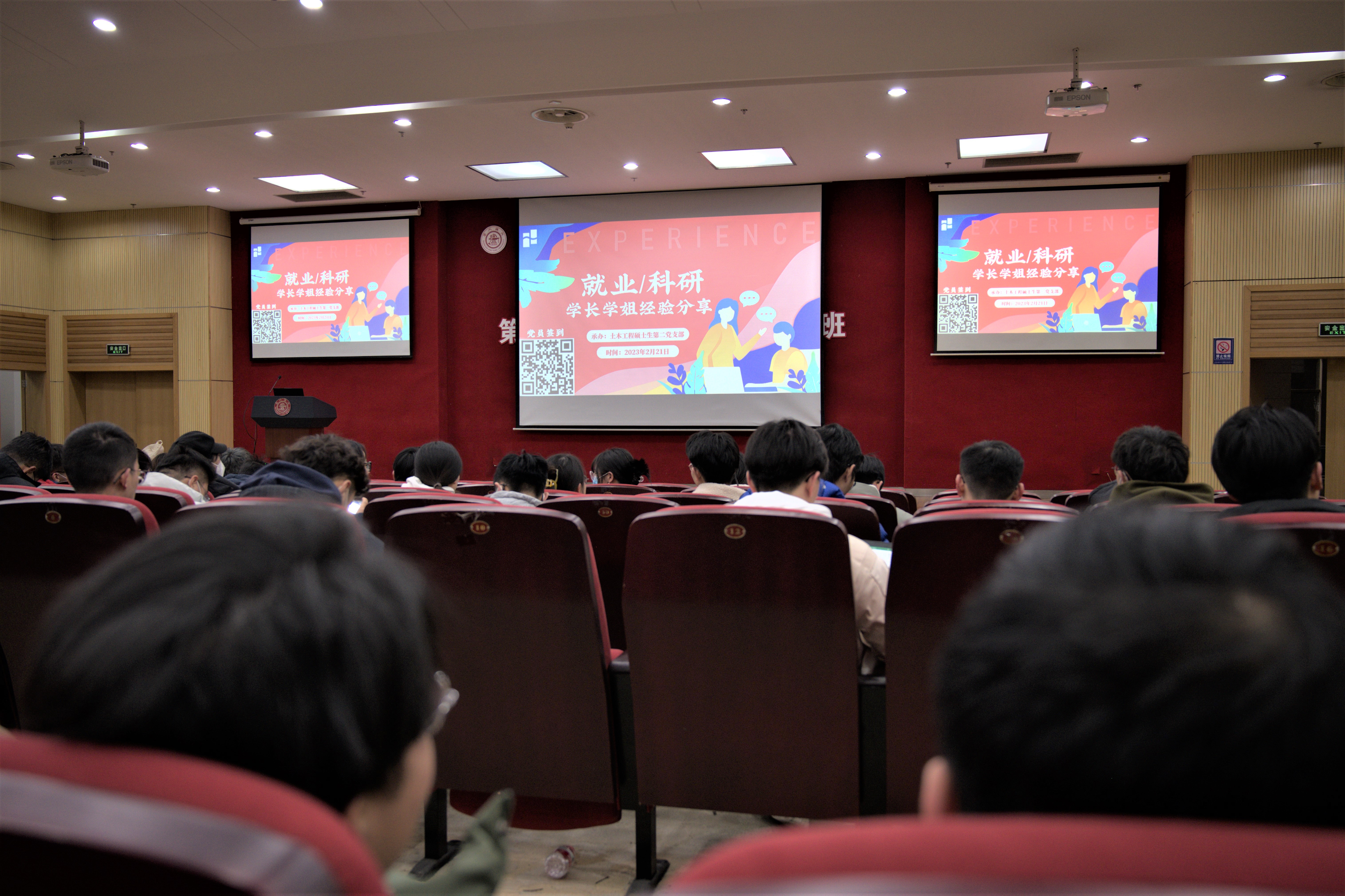 2月21日晚,土木工程系硕士生第二党支部在木兰楼A200报告厅举办就业经验分享的主题党日活动,支部邀请了8名本专业优秀学长学姐分享了自己的就业经历和求职技巧,就业中心基层就业部主任江俊达、大象传媒 学生党建指导老师史舒婧出席活动。活动面向土木系全体硕士研究生,现场气氛热烈,吸引了70余名同学参加。