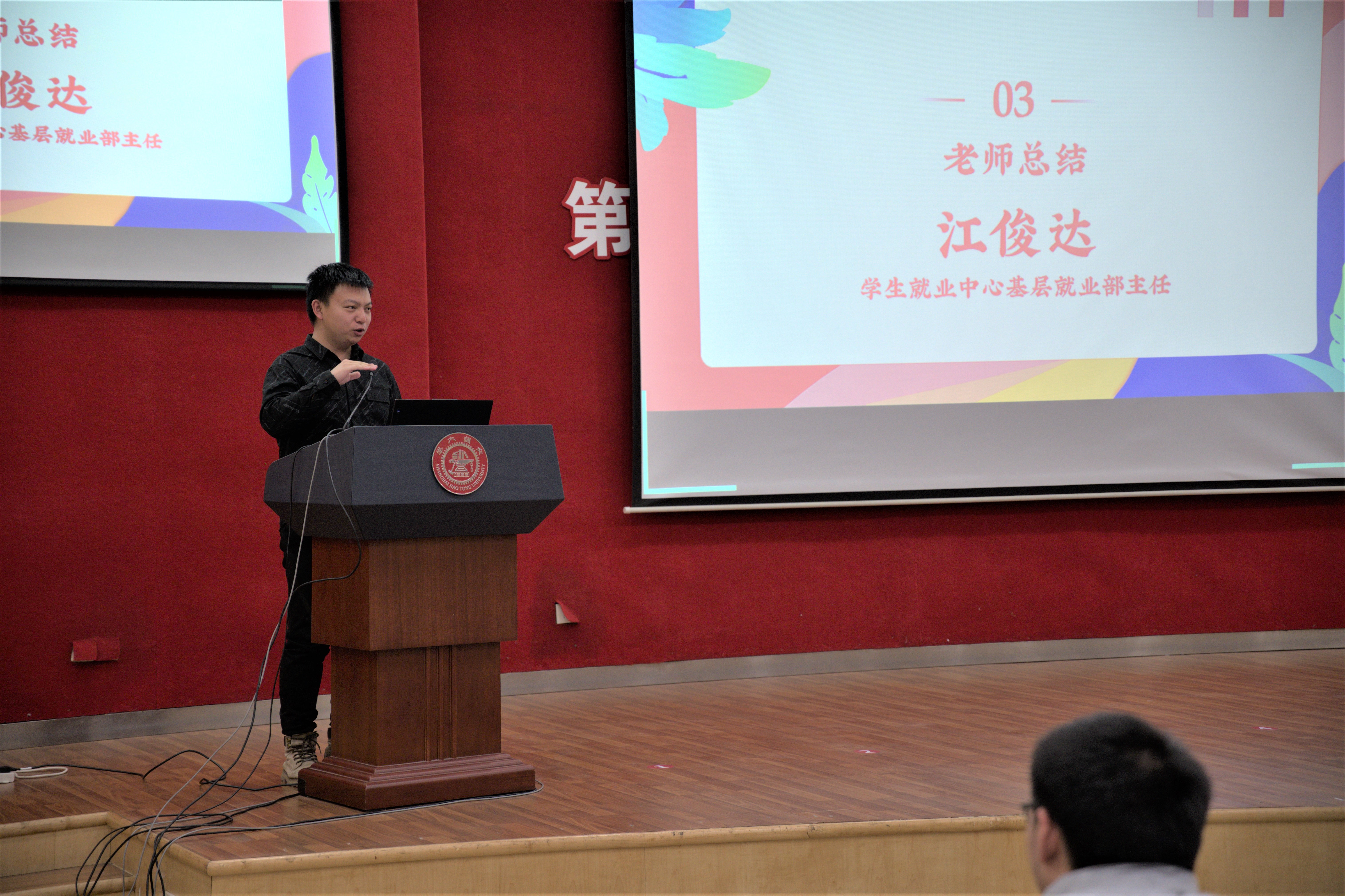 在分享会结束前,史舒婧老师总结了学长学姐们的求职经验,并提醒同学们关注新的就业方向,比如土木数字化运维。江俊达老师针对本次分享会提出几点求职建议:(1)多维度、多角度剖析个人的比较竞争力。要深入挖掘土木行业新增长点和新机会,从高站位思考职业选择,对标深耕各行业的大牛;(2)提早转变应聘者的思维模式。从思考如何进入岗位到思考岗位后期的发展,同学们进入岗位后应该思考如何结合专业背景提升自我竞争力;(3)怀揣着家国情怀选择个人终生奋斗的事业。全面分析个人求职的多个要素,脚踏实地、着眼未来,审视自我可能存在的短视思维,尝试投身高社会价值的工作。最后,他提醒同学们在日后的求职过程中,要不断提升自己的技能和经验,保持乐观积极的心态。
