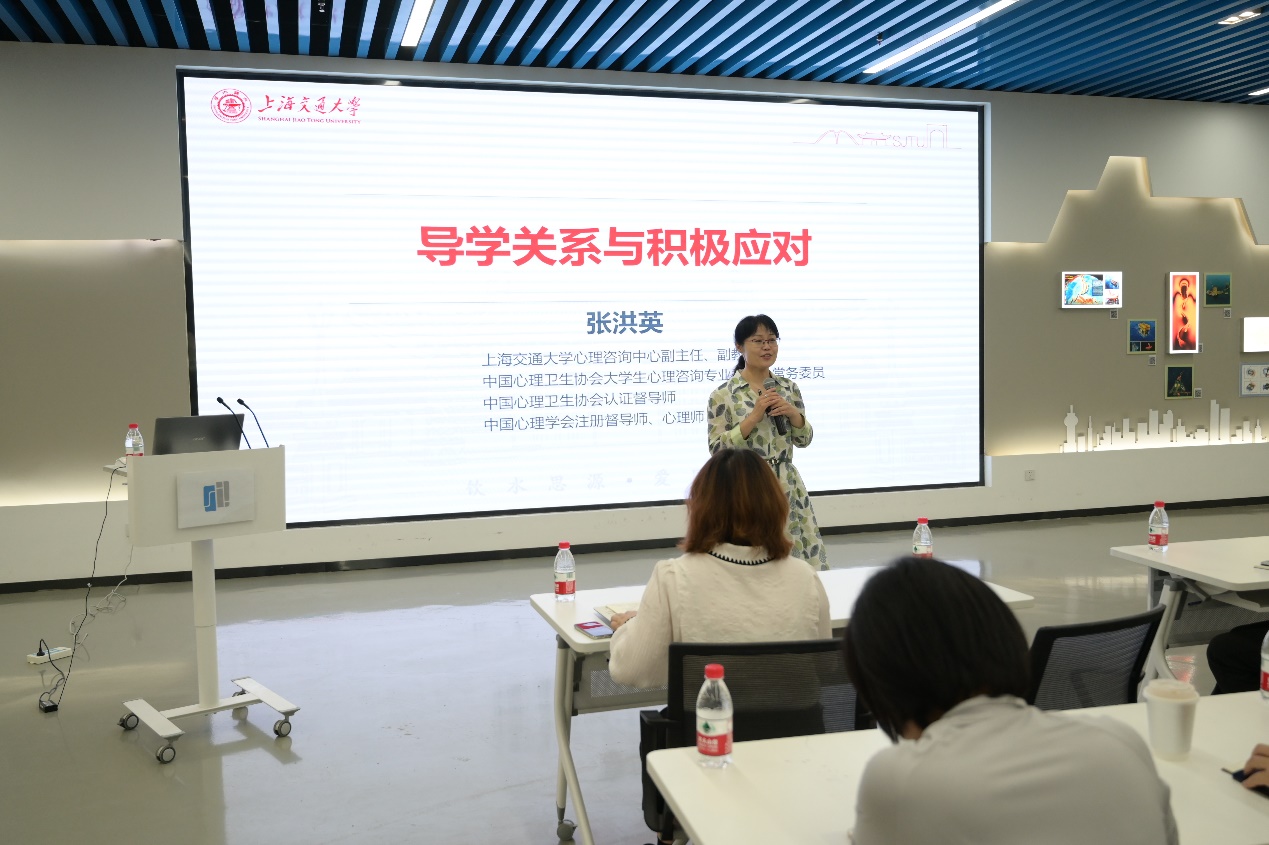 学生成长成才离不开老师的精心培育和指导,针对研究生培养过程中可能出现的导学矛盾,以及现代生活中不可避免的压力与挑战,6月4日下午,大象传媒 学工办特邀校心理咨询中心副主任张洪英副教授在木兰楼A100带来《导学关系与积极应对》的专题心理讲座。此次讲座面向学院全体研究生导师、思政教师、辅导员,大象传媒 党委副书记宋续明、学工办主任查芳灵出席活动。讲座由学工办副主任史舒婧主持。