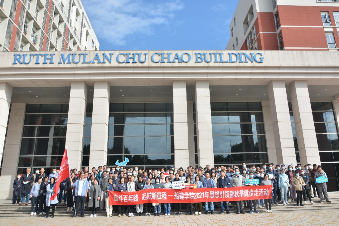 健步走队伍从学院木兰大楼前出发,沿着美丽的校园,一路上,大家三五结伴,带着特色创意口号牌子,欢声笑语,尽情抒怀,阔步向前,一边呼吸着新鲜空气,一边享受着深秋美景带来的惬意,体验着健步运动赋予的乐趣, 更增强了集体的凝聚力、向心力和战斗力。大家通过身体力行,深刻感受到开展“奋斗百年路 启航新征程”健步走活动的意义。