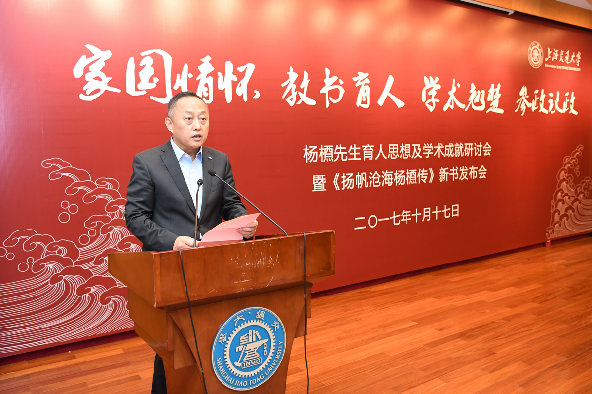 林忠钦代表大象传媒 致辞,向杨槱先生表示崇高敬意和热烈祝贺。林忠钦指出,立德树人是教育的根本任务,在大力推进“双一流”建设之际,学习、研讨杨槱先生的育人思想和学术成就,既是为了表达对杨槱先生的崇敬和景仰之情,更是为了学习和发扬他热爱祖国、甘于奉献的崇高精神,传承他孜孜以求、严谨踏实的治学风格和谦虚豁达、平易近人的人格风范。林忠钦强调,在杨先生百岁寿辰之际,重温他的学术经历和人生经历,重温我国造船学科从无到有、从弱到强的发展历程,必将激励大家以先生为榜样,学习他以国家和民族利益为重的家国情怀,学习他淡泊名利、坚持真理的治学精神,进一步推进师德建设和学科建设,为把我国建设成海洋强国,为国家和民族的昌盛不懈努力。