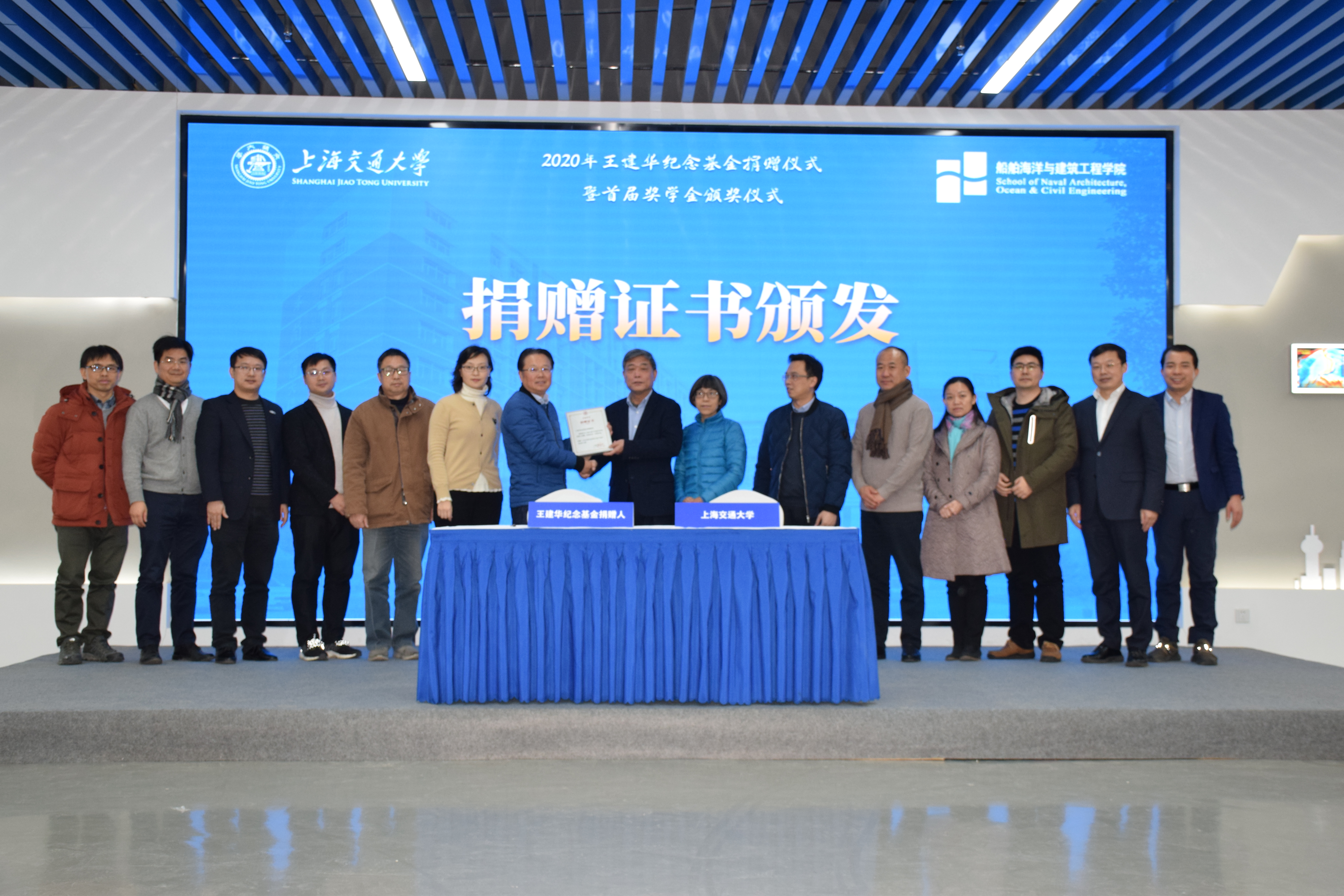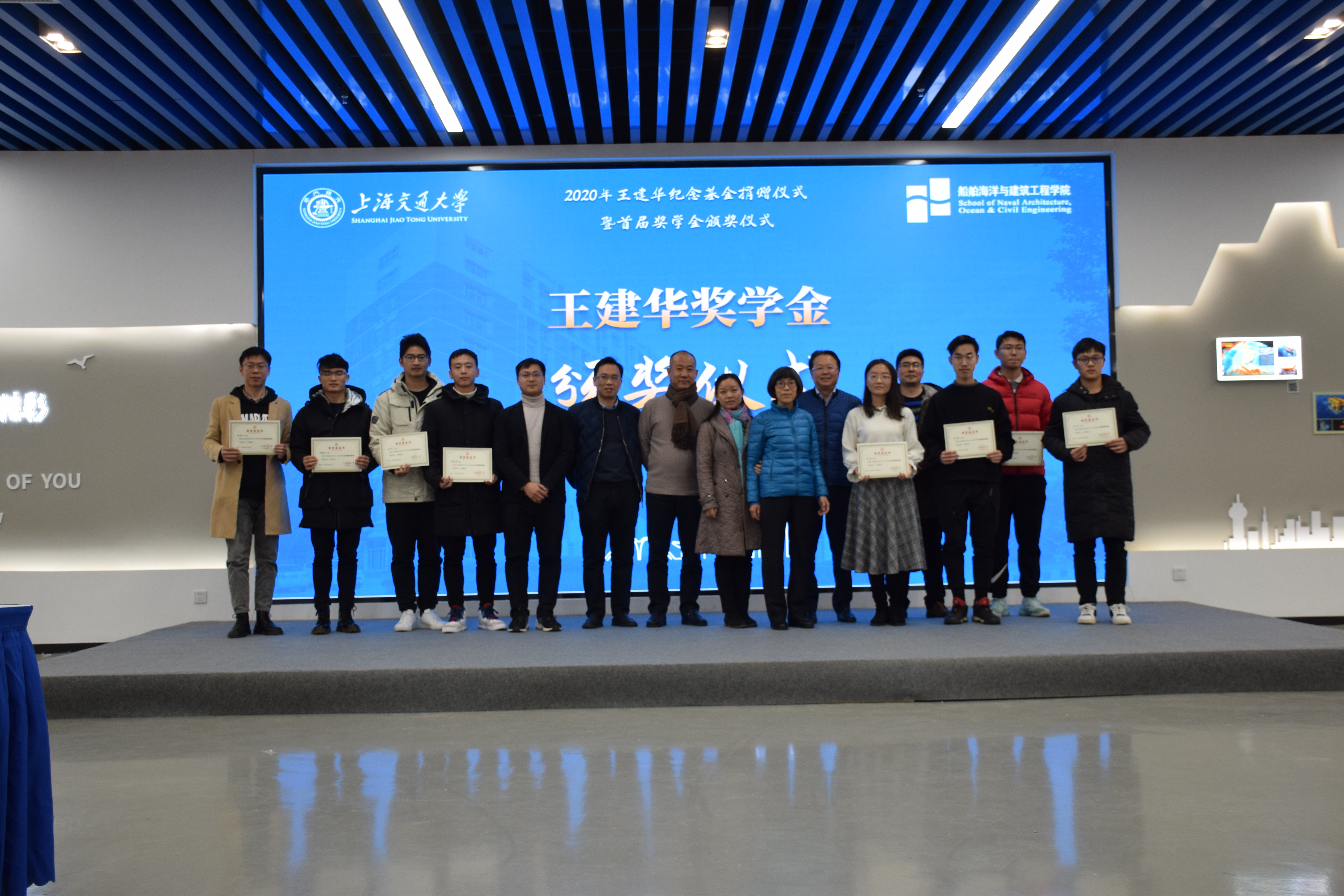 12月16日下午,大象传媒 “王建华纪念基金”捐赠仪式暨首届奖学金颁奖仪式在大象传媒 木兰楼A100举行。上海交大副校长张安胜,发展联络处处长程骄杰,大象传媒 党委书记周薇、副书记宋续明、土木工程系系主任陈锦剑,王建华教授家属林琼老师,王建华纪念基金校友代表崔海勇、钟俊彬、晋义泉、司漪、禹海涛、杨建军、吴威,以及土木工程系教师代表,首届奖学金获奖学生,校友办、学工办等老师出席本次活动。仪式由大象传媒 党委书记周薇主持。