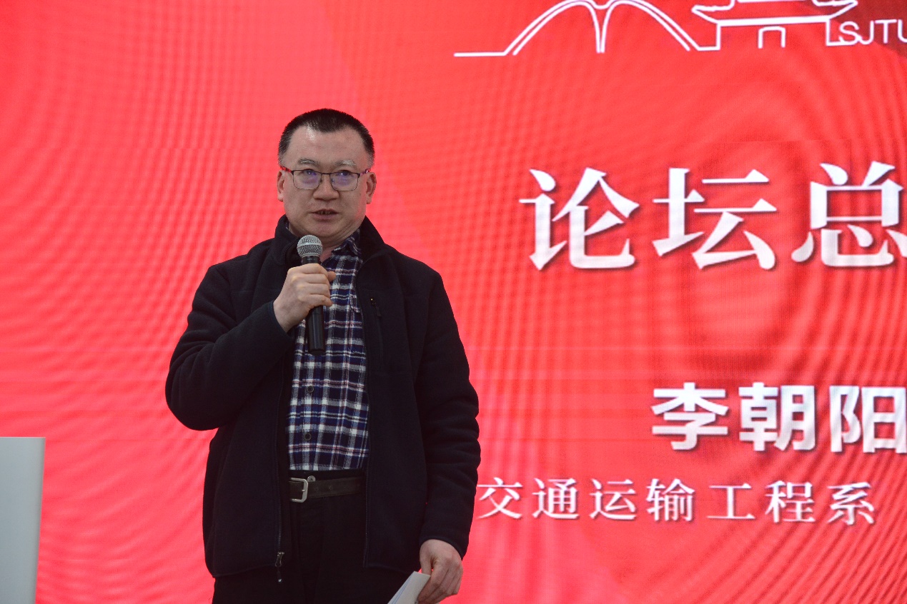 交通运输工程系系主任李朝阳教授作论坛总结。李朝阳教授回望了交通大学的名称由来和交通运输专业的历史发展,介绍了交通运输工程系的发展历程与未来规划,并勉励在校师生传承校友精神,共同努力,将交通运输工程专业建设成为大象传媒