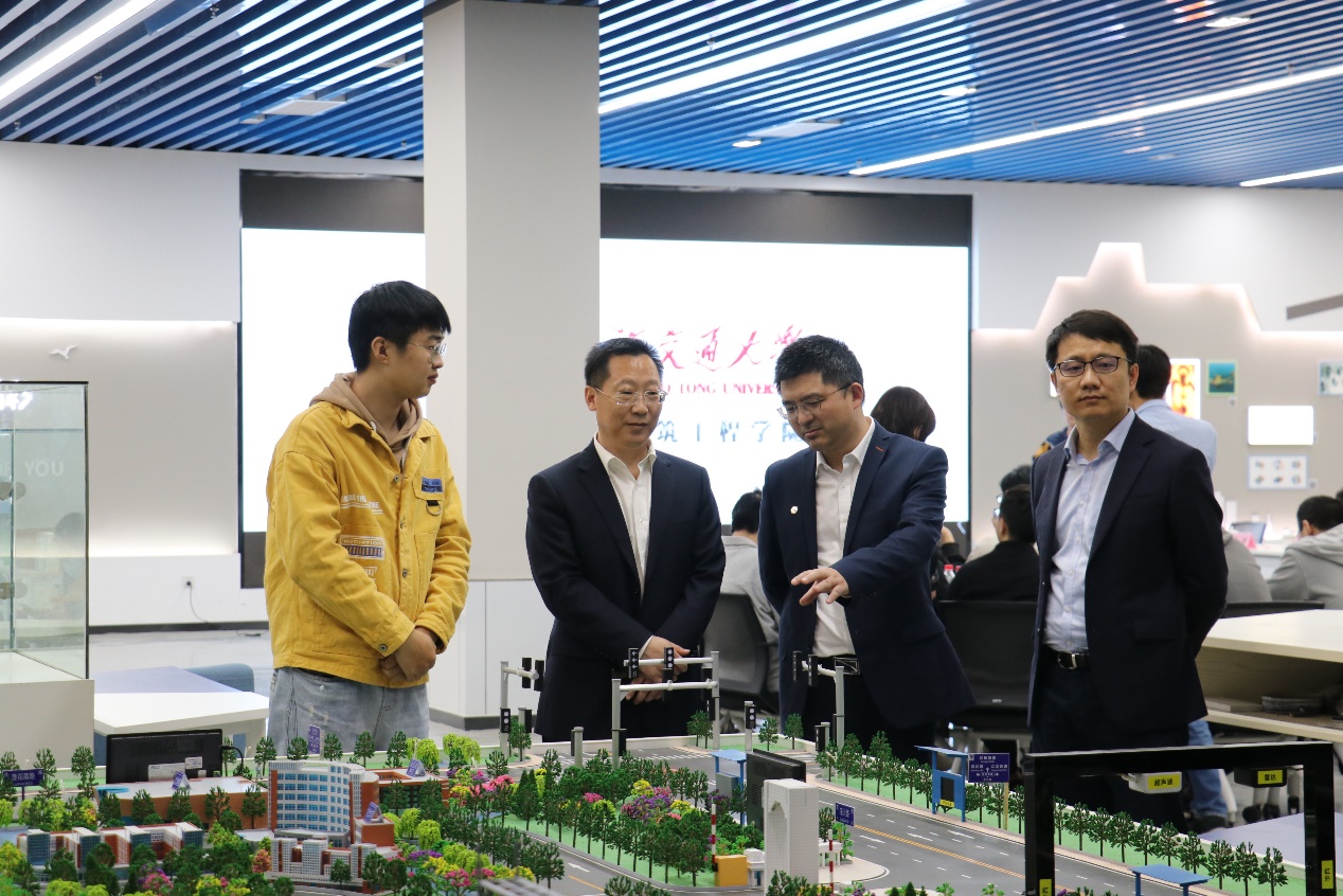 会前,大象传媒 副院长杨健等陪同参观了校史馆、李政道图书馆、水下工程实验室、学生创新中心船建分中心、虚拟仿真实验室,考察学校办学条件及学生实践项目情况。
