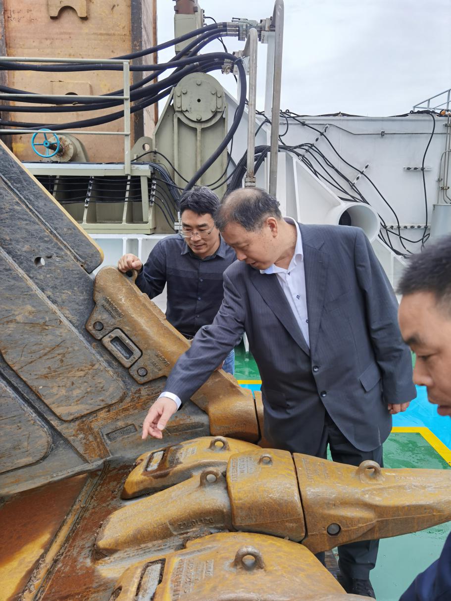 为了配合“长鹰8”的初次作业,研发设计人员杨启、陈新权、冯永军、赵永生等人冒雨登船,亲自参与施工中的每一个环节。