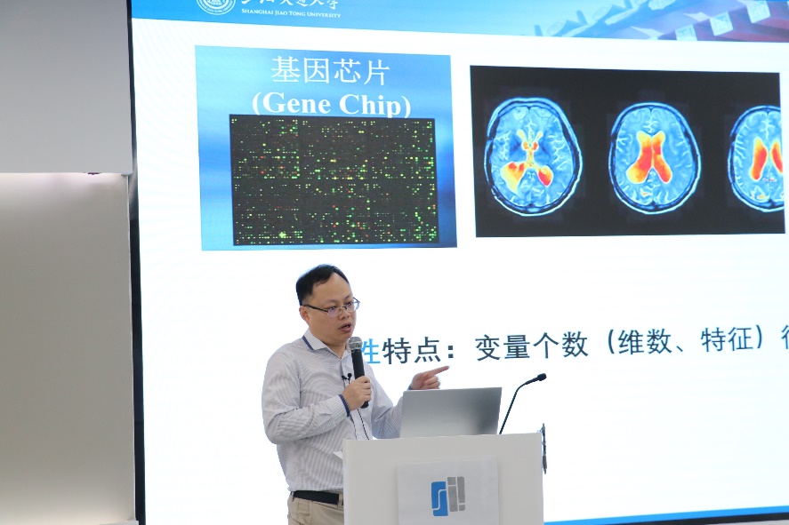 专题报告会中,金石院长的报告题目为《Consensus-based High Dimensional Global Non-convex Optimization in Machine Learning》,介绍了机器学习中的一种非凸优化的计算方法。