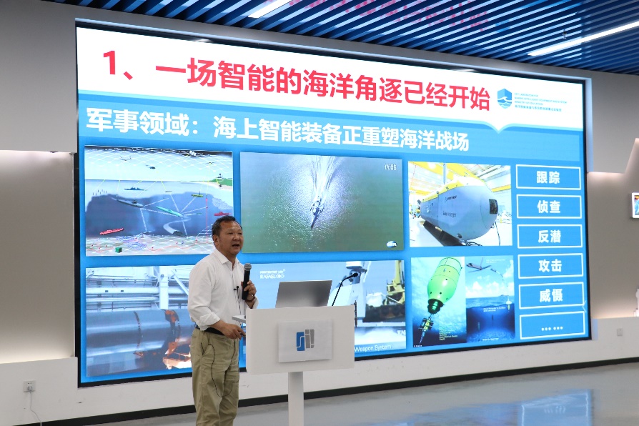 最后,廖世俊对自然科学学院嘉宾们的到来表示衷心的感谢。他提出,船海智能无人技术研究中心的成立,有利于老师们在此平台上共同切磋,推动人工智能在工程领域的应用,对加强两个学院之间的共同合作有着重要意义。希望今后两院的学者依托中心更深入地开展合作与交流,碰撞出新的学术火花。