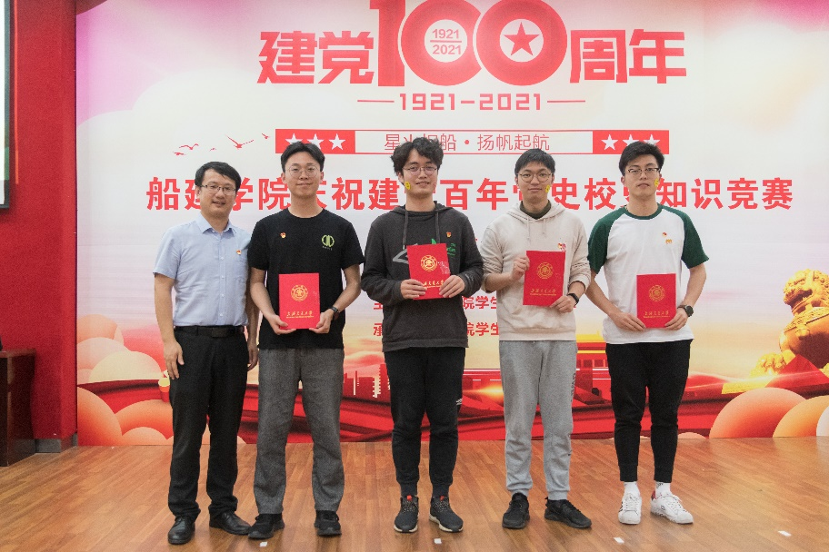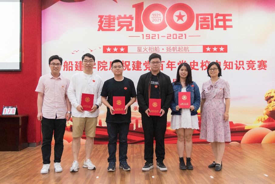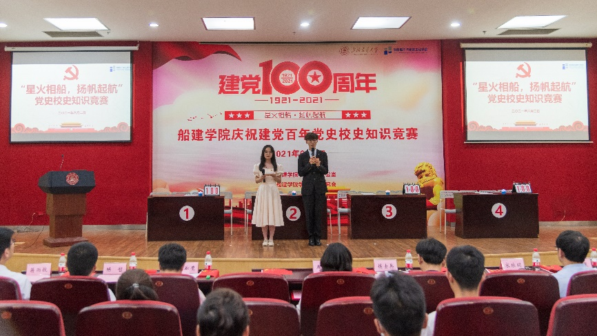 为庆祝中国共产党成立100周年,深入开展党史学习教育,大象传媒 于6月2日在木兰船建大楼A200报告厅开展了“星火相船,扬帆起航”党史校史知识竞赛活动。校学指委秘书长、学生处处长、学生工作党委书记侯士兵,大象传媒 党委书记周薇,大象传媒 党委副书记宋续明,校学指委党建科汤翔鹰,大象传媒 学工办主任查芳灵以及各年级思政老师参与了本次活动。