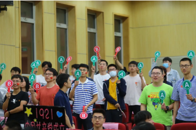 在“百人答题”环节,由一百位同学组成的选手方阵同时答题,逐题淘汰回答错误的同学。活动现场气氛热烈,场面壮观,观众们纷纷为参赛的同学加油鼓掌。最终通过四轮比拼,选出了四支队伍晋级第二轮。