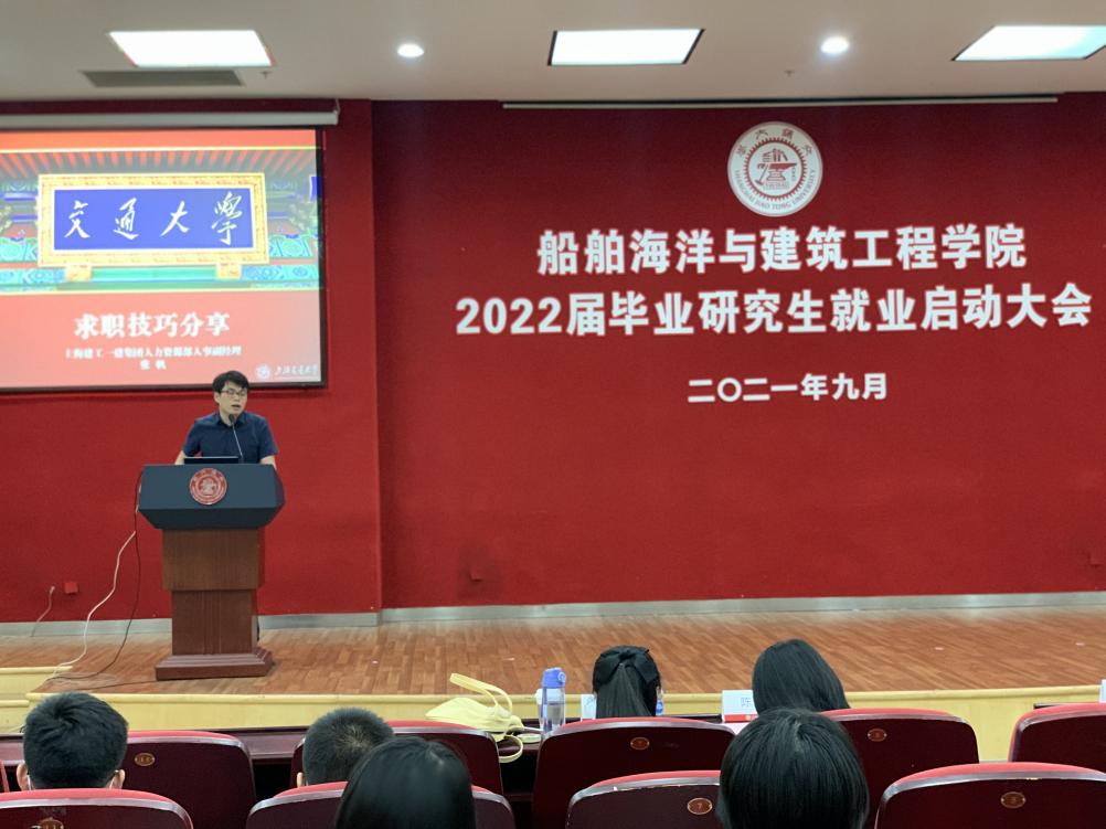 上海建工一建集团人力资源部人事副经理、组织科副科长张帆进行了求职经验分享。作为一名企业HR,他提醒同学们在择业时,既要注重“大”,选择能让自己不断学习,扎扎实实积累知识、提高能力的工作;也要注重“快乐”,虽然工作是辛苦的,但看到劳动成果的快乐感、充实感是宝贵的。同时,张帆也从面试官的角度,生动地向同学们分享了简历制作与求职面试的方法与技巧。