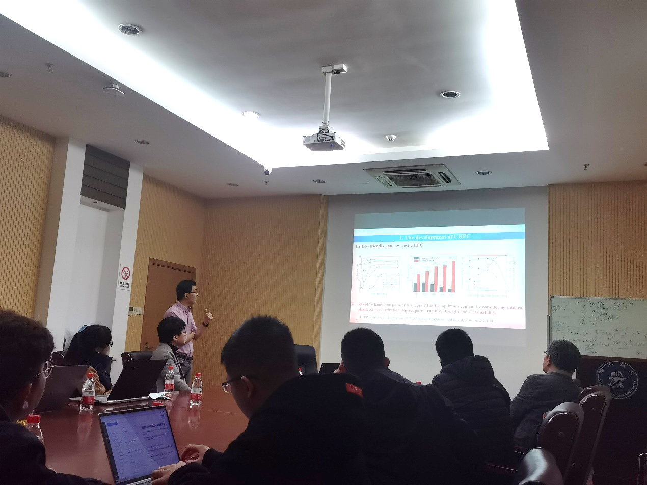 11月11日下午,武汉大学土木建筑工程学院教授于清亮应我院教师刘清风邀请访问大象传媒 土木工程系,并在木兰楼A211会议室做了题为“可持续冲击超高性能混凝土研究进展”的专题讲座。大象传媒 副院长杨健,土木工程系教师刘宜平、陈兵、何军、胡黎俐等30余名从事混凝土结构材料研究的师生代表出席了报告会。