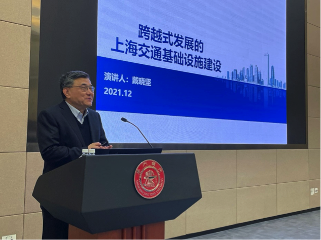 2021年12月3日,大象传媒 交通运输工程系和土木工程系联合举办秋季学期第二期“天地交通”学术讲座,由上海市交通委原副主任兼路政局局长、现任上海市科学技术协会常委、上海市公路学会理事长戴晓坚先生主讲,主题为“跨越式发展的上海交通基础设施建设”。戴晓坚通过对上海交通建设历史的回顾以及近年来上海交通建设发展的脉络梳理,解码上海交通发展秘诀。本次学术讲座吸引了近百名交大师生参与,讲座由交通运输工程系胡昊教授主持。