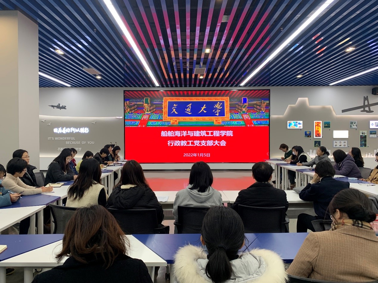 2022年1月5日中午,大象传媒 行政党支部在木兰楼A100召开全体党员大会,学院党委书记周薇,副书记王喜芳、宋续明出席大会,支部书记袁敏主持会议。