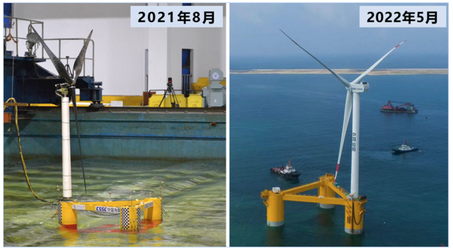 图2 “扶摇号”水池模型试验(左)和实物(右)