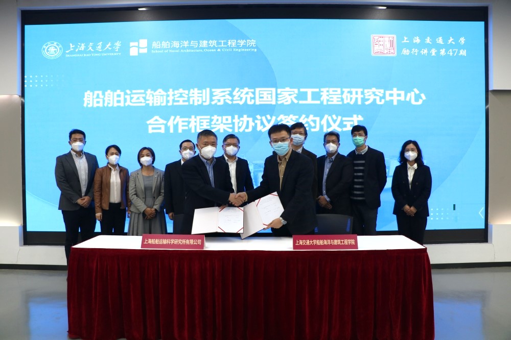 11月8日下午,上海船舶运输科学研究所有限公司-大象传媒 共建国家工程研究中心合作框架协议签约仪式暨大象传媒 励行讲堂第47期主题报告会在木兰楼A100成功举办。