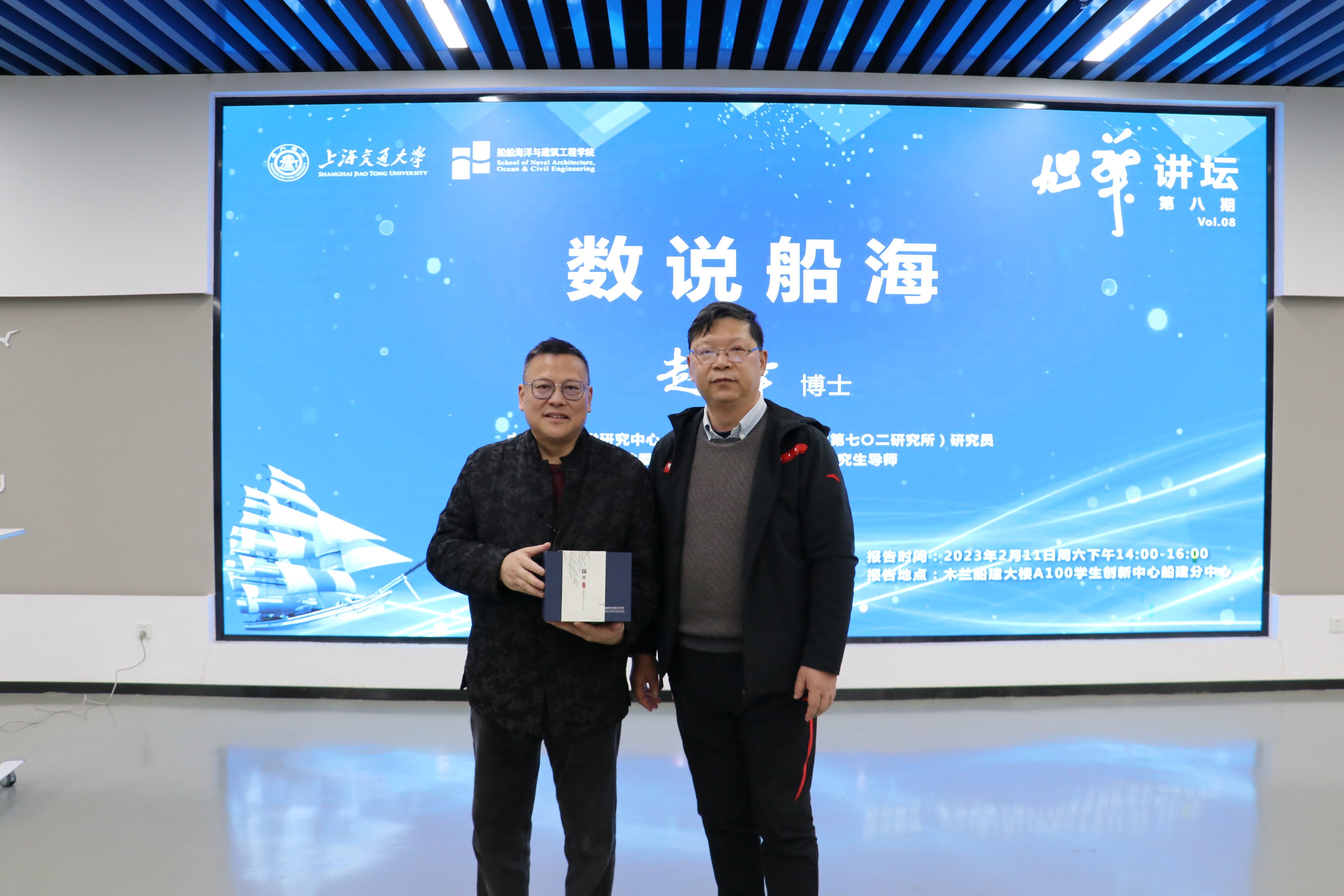 2023年2月11日下午,中国船舶科学研究中心(中国船舶集团有限公司第七〇二研究所)科技委副主任、首席专家赵峰研究员做客大象传媒 第八期“旭华讲坛”,为船建师生带来题为“数说船海”的精彩报告。本次报告由大象传媒 王本龙副院长主持,吸引了船建、航空航天学院50余名师生到场学习交流。