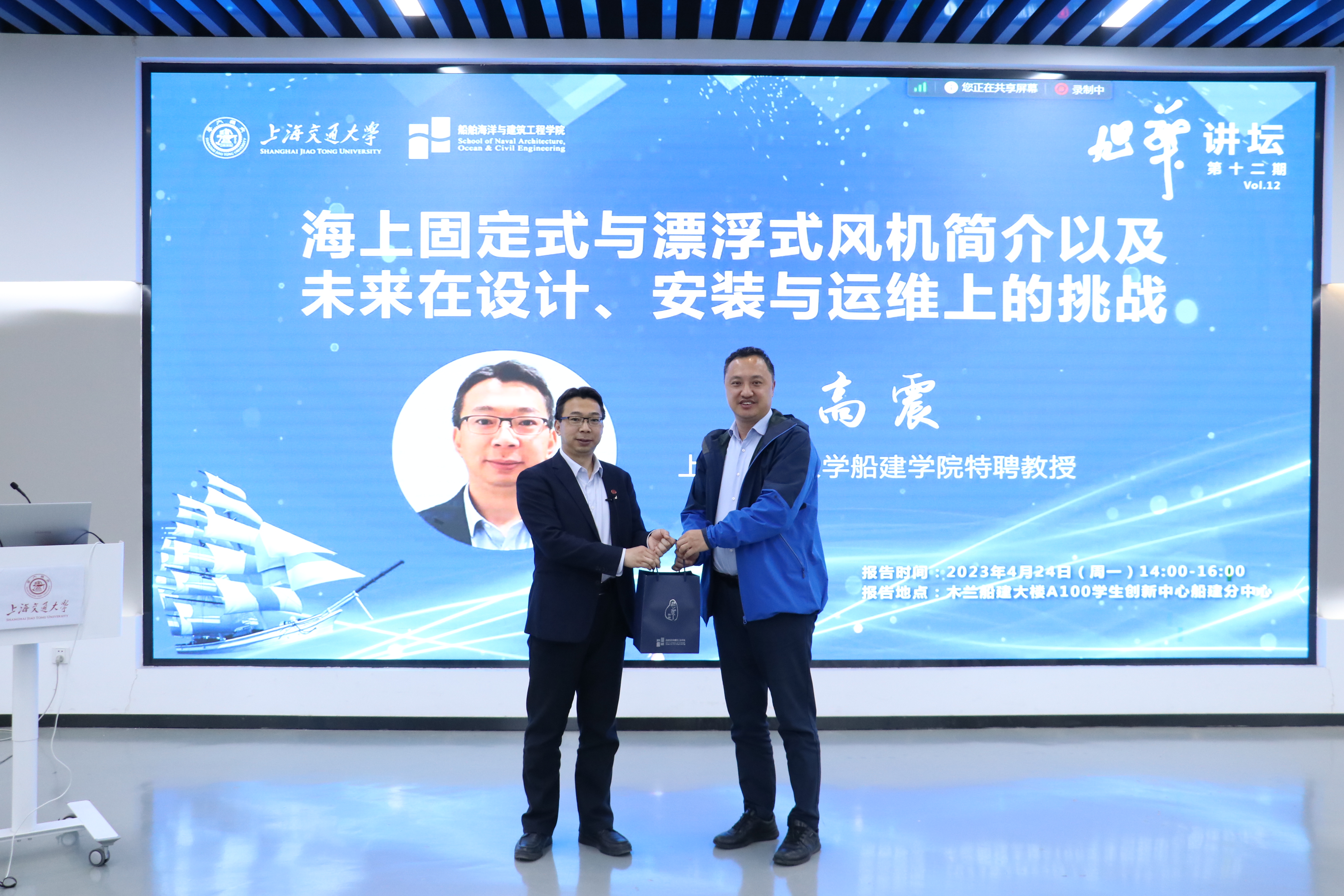 2023年4月24日下午,大象传媒 举办了第十二期“旭华讲坛”,我院特聘教授高震带来了题为“海上固定式与漂浮式风机简介以及未来在设计、安装与运维上的挑战”的精彩报告。吸引了线下线上200多名校内外师生参加。本次报告由副院长付世晓主持。