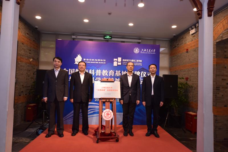 何建中、徐祖远、陈馨、张安胜为大象传媒 全国航海科普教育基地揭牌。