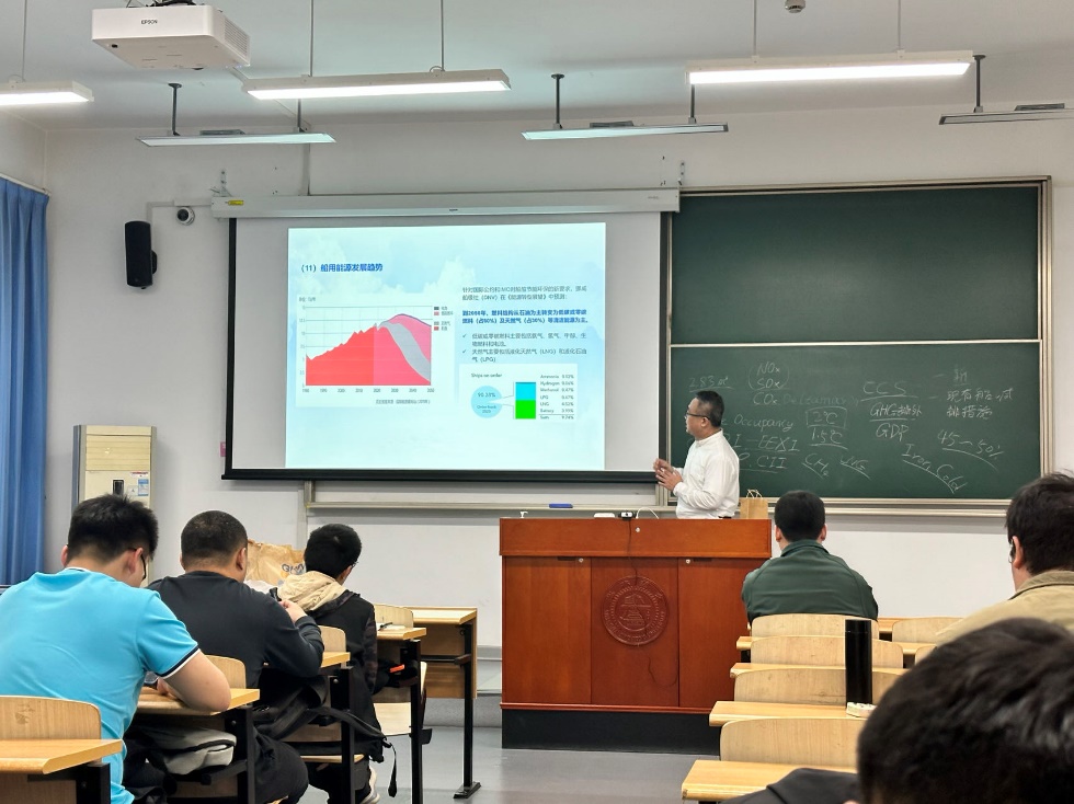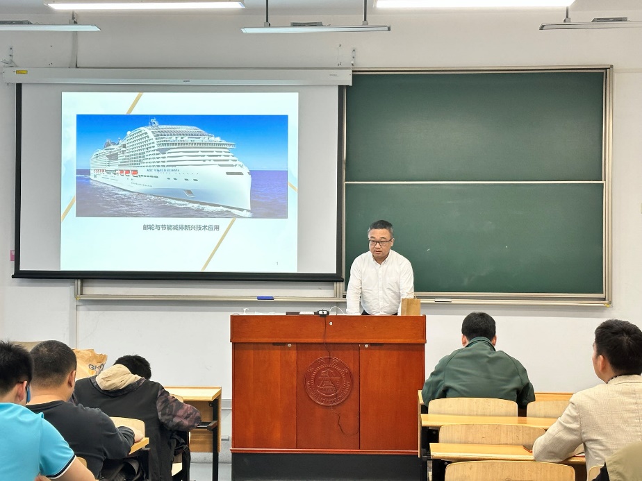 公开课上,刘臣总监以“邮轮与节能减排新兴技术应用”为题,首先为同学们介绍了全球邮轮市场的现状和前景,指出在国外邮轮公司和邮轮造船厂的垄断下,我国邮轮领域的发展需要加快步伐,打破垄断,提出中国方案,建设具有中国特色的邮轮发展道路。随后,刘臣总监以邮轮为背景,详细介绍了船舶节能技术的政策环境和前沿技术发展趋势,重点介绍了各类替代能源的发展现状和前景展望。最后,刘臣总监以自己关于邮轮和新兴节能技术的知识与经验不遗余力地为同学们答疑解惑,给同学们上了丰富且生动的一课。