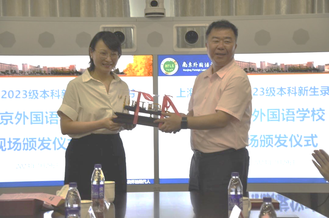 仪式上,张兆国副校长一行分别向三所中学赠送了象征交大厚重历史的《校门纸雕画》、交大风景画册《光影交大》,获得科技进步特等奖的天鲸号挖泥船船模、录取喜报和定制版“交大运”书签,接着领导们给全体新生颁发了录取通知书,最后合影留下珍贵记忆。