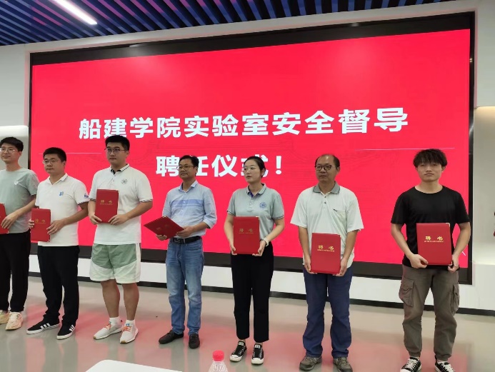 会议上举行了大象传媒 实验室安全督导聘任仪式,彭涛为本届八位实验室安全督导组成员颁发了聘书。