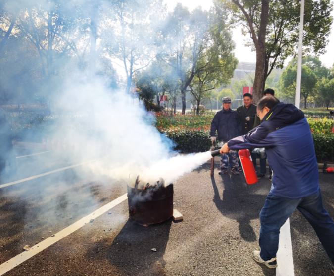 消防演练结束之后,现场师生员工开展消防灭火器材实战演练。保卫处老师现场演示了消火栓和灭火器的使用方法。随后师生进行了消防灭火演练,真切地感受了消防器材的操作,加强了对于灭火操作的认识。
