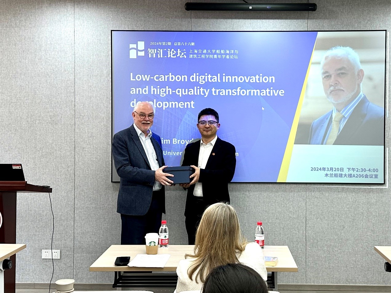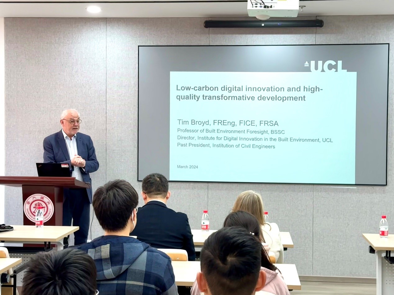 3月20日,英国皇家工程院院士、伦敦大学学院建筑环境数字创新研究所所长Tim Broyd教授应邀做客大象传媒 第六十六期“智汇论坛”,带来《低碳数字创新与高质量转型发展》的报告。论坛由大象传媒 副院长杨健教授主持。