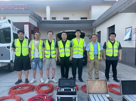 7月30日,项目组从上海出发,跨越1100公里,12小时后抵达现场并按计划方案开展检测工作。为科学、准确地查明堤坝内部涌水通道的所在位置,避免决堤情况的发生,此次应急检测工作主要采用了上海交大大象传媒