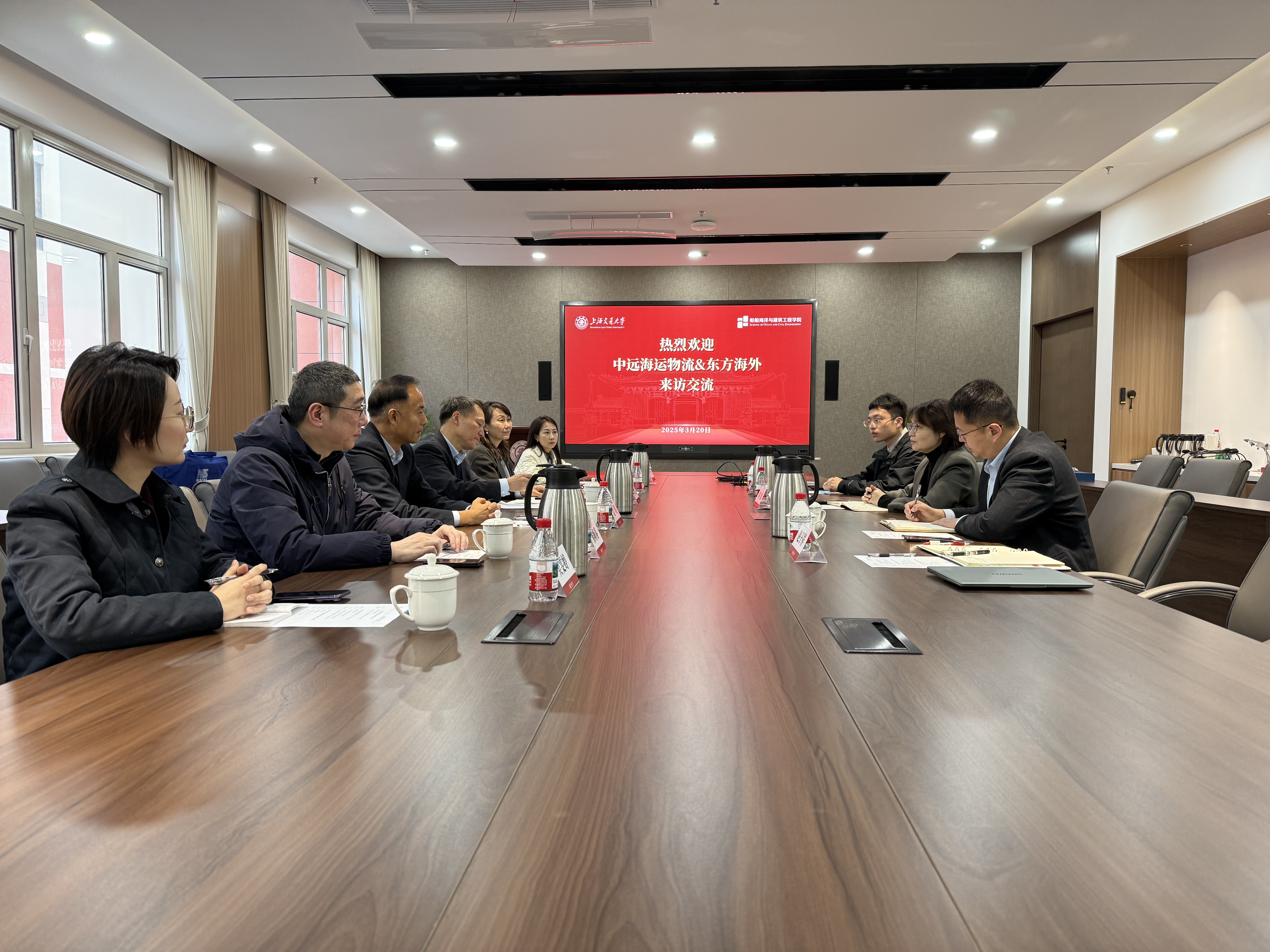 3月20日上午,中远海运物流供应链公司上海分公司总经理、船舶与海洋工程系1993届校友金琪与东方海外货柜航运(中国)有限公司董事总经理檀卓群一行来访学院,双方围绕人才招聘、实习基地建设、企业校招合作机制等方面展开深度交流。学院党委书记周薇、副书记李扬以及相关老师参与接待交流。