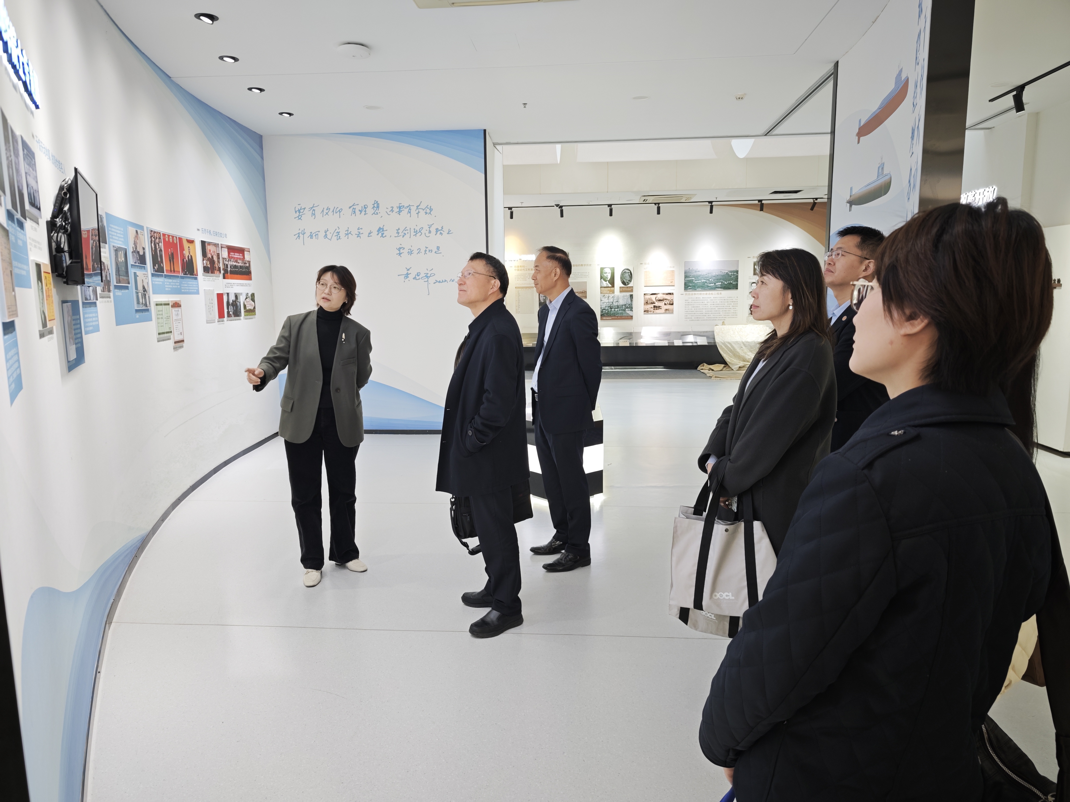 会前,与会人员一同参观了“与国同行”院史馆。通过历史照片、科研成果及黄旭华院士事迹的展示,来宾们深入了解了学院的深厚底蕴,以及对国家重大战略需求的贡献,特别是对黄旭华院士“干惊天动地事,做隐姓埋名人”的科研精神表达了崇高敬意。