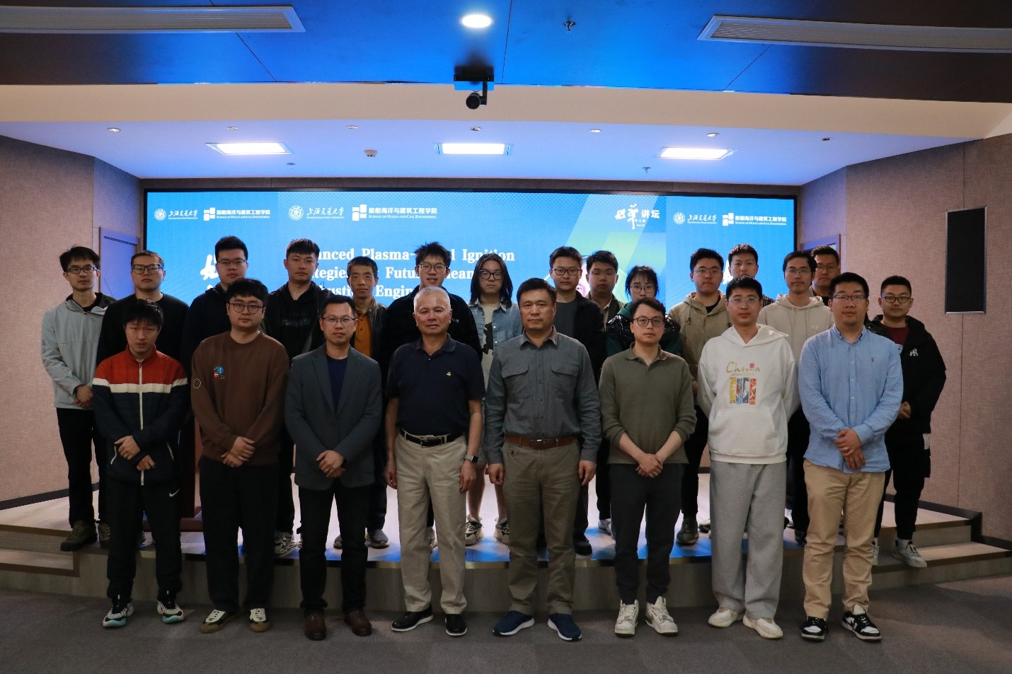 在随后的提问交流环节,与会师生围绕多重放电与多核点火的耐久性与应用场景、等离子体点火控制方法、爆轰火焰传播特性与应用难点、以及高背压高密度激波管试验装置设计参数等核心问题,与郑明教授进行了深入且热烈的交流。郑教授以其丰富的科研经验、耐心且通俗易懂的讲解,让与会师生加深了对船舶领域内燃机应用必要性的认识,理解了点火技术及其未来发展对高效低排放绿色内燃机的重要意义,极大启发了青年师生对探索未来先进燃料引燃与控制技术的科研思维。
