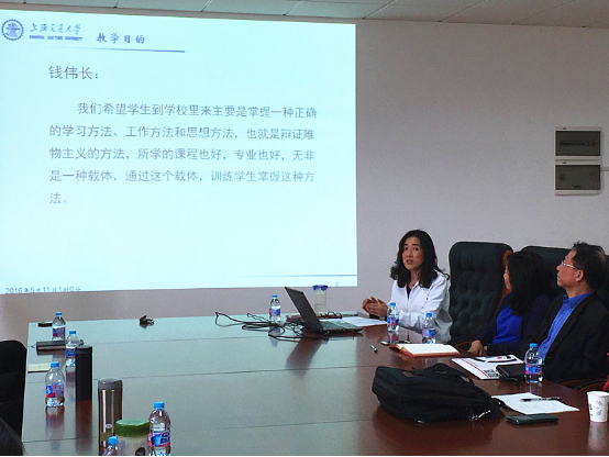 曾获“卓越教学奖”、“最受学生欢迎教师称号”的孙雁老师作了“以课程为载体,培养学生的创新思维”的主题报告。孙雁以自己主讲的《材料力学》课程为例,在课程设计上以学校“三位一体”的人才培养理念,即“知识探究、能力建设、人格养成”为指导思想,将教学内容、能力培养、育人思想始终贯穿于她的备课和授课过程,让学生了解公式背后问题的提出和进程,领悟前人认知世界过程和方法。孙雁认为,教师“授业”,让学生了解一些新知识是教学的第一层次;教师“解惑”,让学生学会质疑、尝试不同解答方案是教学的第二层次;教师“传道”,让学生悟道,掌握认识世界的方法是教学的第三层次。孙雁的报告使老师们感悟深刻,可以作为课程设计的经典案例。