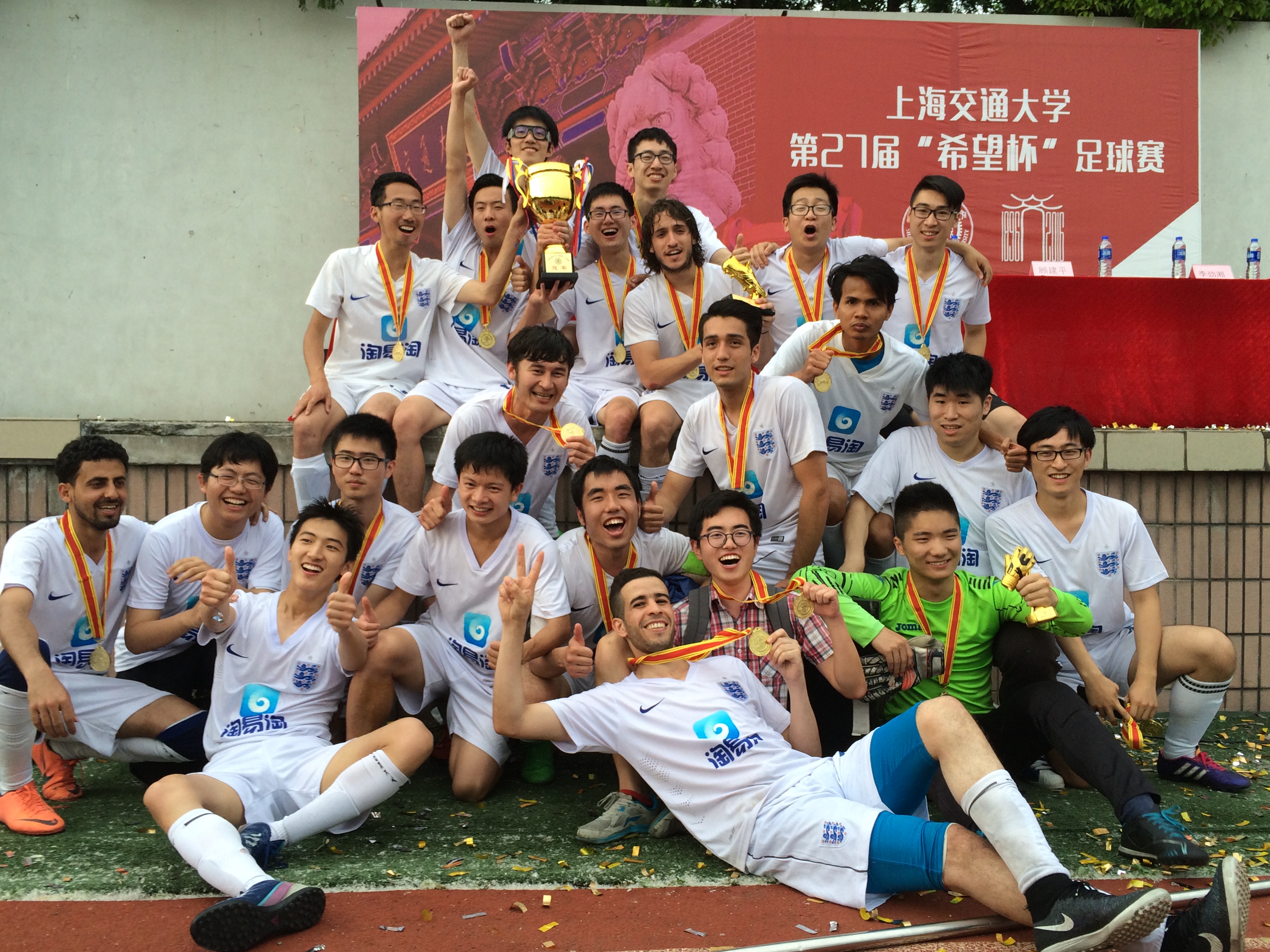 5月25日下午,上海交大第二十七届希望杯足球赛决赛在南区体育场举行。经过九十分钟鏖战,大象传媒 学生足球队以2:0的比分战胜了电子信息与电气工程学院,三年内第二次夺得冠军。校长张杰,校团委书记方曦、副书记武超,体育系主任陈作松、党总支书记顾建平、副书记蔡皿,电子信息与电气工程学院党委副书记李劲湘,大象传媒 党委副书记杨建军等嘉宾出席了颁奖仪式并为球员颁奖。