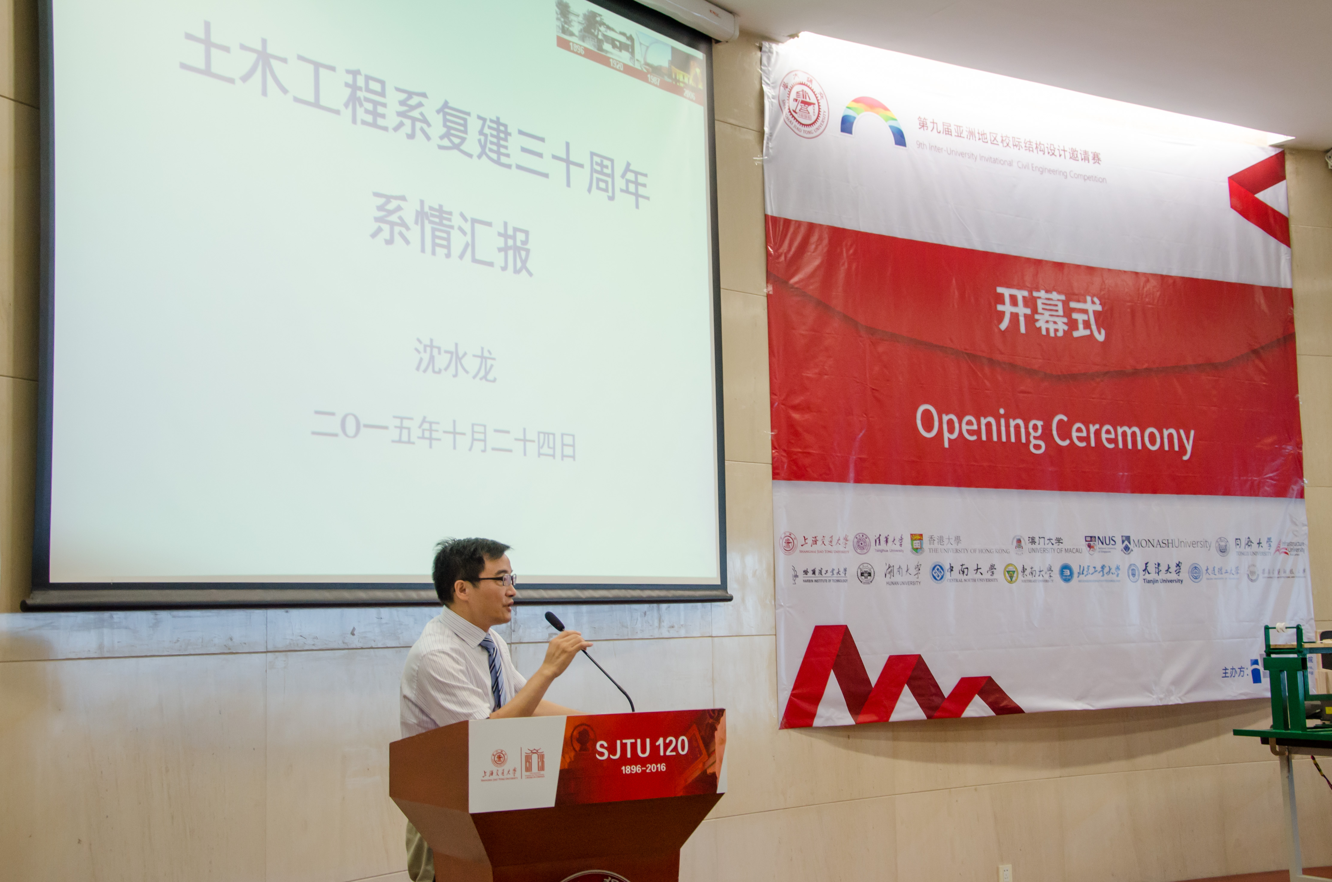 沈水龙代表主办方大象传媒 土木工程系致辞,从历史积淀、人才培养、科研学术和未来展望等方面向参赛队员全面介绍了大象传媒 土木工程系复建30周年以来的发展状况。
