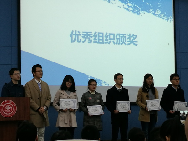 12月10日上午,大象传媒 青年志愿者服务总队在逸夫楼举办2016年度年会,校青志总队指导老师黄一,总队队长贾煜,以及各院系青志队、社团组织代表、优秀志愿者个人出席了本次年会。年会上进行了十佳公益组织与个人以及优秀公益组织与个人颁奖仪式,大象传媒 青年志愿者服务总队荣获本学年“优秀公益组织”称号。