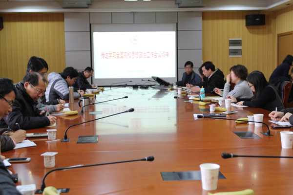 2017年1月12日中午,大象传媒 分党委在木兰楼A1002召开教工支部书记会议,传达学习全国高校思想工作会议精神。院党委书记张卫刚,党委副书记李巍、杨建军,党办主任朱惠红及全体在职教职工支部书记参加会议,会议由党委书记张卫刚主持。