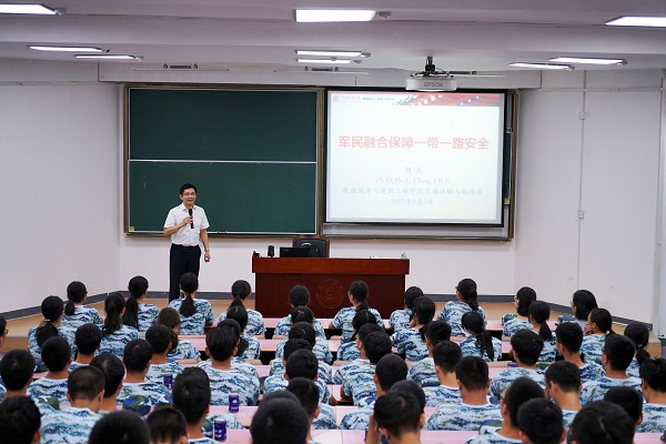 教授、土木工程专业刘西拉教授、轮机工程专业张维竞教授和交通运输与国际航运专业胡昊教授四位名师走进军营,为参训师生开展讲座,从专业出发讲解国防形