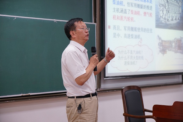 张维竞教授首先给大家介绍了柴油机、燃汽轮机、蒸汽轮机这三种类型的推进系统,而后阐述了中国军舰动力系统的现状。同学们从张维竞教授的讲述中了解