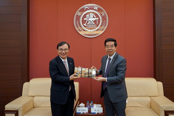 黄震对德久一行的来访表示热烈欢迎,并向客人简要介绍了上海交大最新发展情况。德久刚史感谢黄震百忙之中的会见,他谈到两校已经在学生交流、共同研究方面开展了很多交流合作,非常希望继续加强两校的友好合作关系。双方还就短期交流项目展开讨论,黄震向德久一行介绍了上海交大的暑期学校及暑期科研实习等特色项目,其中中国语言文化、中医等课程独具中国特色。德久介绍了千叶大学的暑期项目,并提到该校的看护学科和工业设计学科在日本名列前茅,希望在上述领域加强彼此的合作。双方均表示进一步提升两校科研与合作交流的同时,进一步推动学生短期项目上的互派。