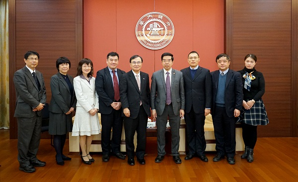 11月20日下午,大象传媒 副校长黄震在闵行校区会见日本千叶大学校长德久刚史一行。随同来访的有千叶大学副校长渡边诚、护理学教授中村伸枝、未来医疗系事务部护理学部事务长天野千惠子、学务部国际企划课课长高尾喜代志、上海事务所所长李欣立。一同参加此次会见的有上海交大-千叶大学国际合作研究中心副主任龚晓波及国际合作与交流处相关人员。