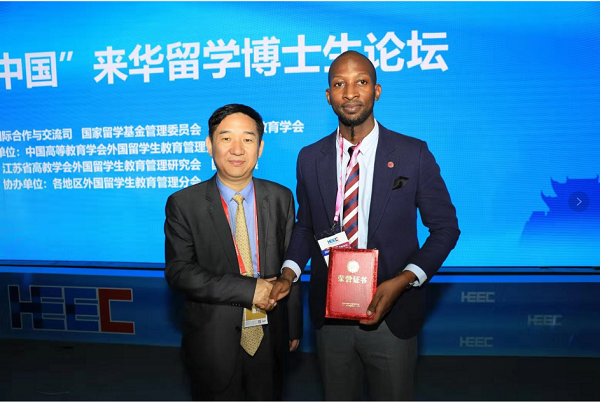 据悉,此次“学在中国”论坛共设理工组、医学农林组和文科组三个分论坛和一个主论坛,共有来自南京大学、东南大学、大象传媒 、清华大学、哈工大、北京航天航空大学等近40所知名高校的博士留学生分享了他们在华学习的故事和感悟。来自全国约50所高校的200 余名国际学生与教师参与聆听。 中国高等教育学会外国留学生教育管理分会秘书长李建民、理事长刘京辉、江苏省教育厅洪流副厅长、国家留学基金委王胜刚副秘书长、中国高等教育学会孙伟杰监视长出席开、闭幕式。报告结束后,国家留学基金管理委员会副秘书长王胜刚等为唐约克及其他报告人颁发荣誉证书。