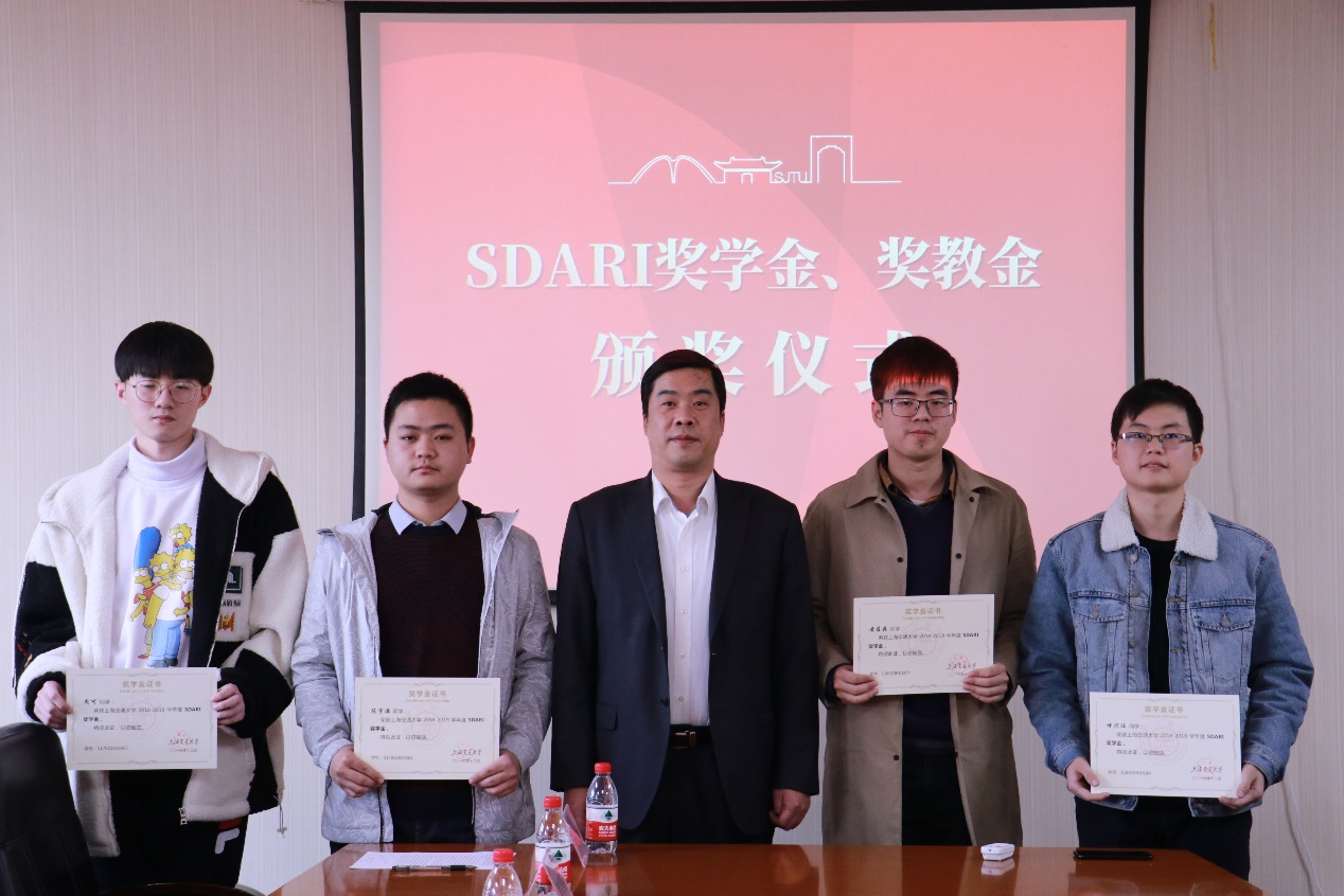 2019年12月10日下午14:00,大象传媒 SDARI奖学金颁奖仪式暨企业招聘宣讲在木兰楼A1008举行。上海船舶研究设计院总工程师王刚毅,人力资源部主任辛智卿,人力资源部副主任綦爽,大象传媒 党委副书记宋续明,团委书记赵恺,学生事务工作负责人史舒婧,就业工作辅导员陈超,以及2018-2019学年度SDARI奖学金的4位获奖者出席仪式。会议由史舒婧主持。