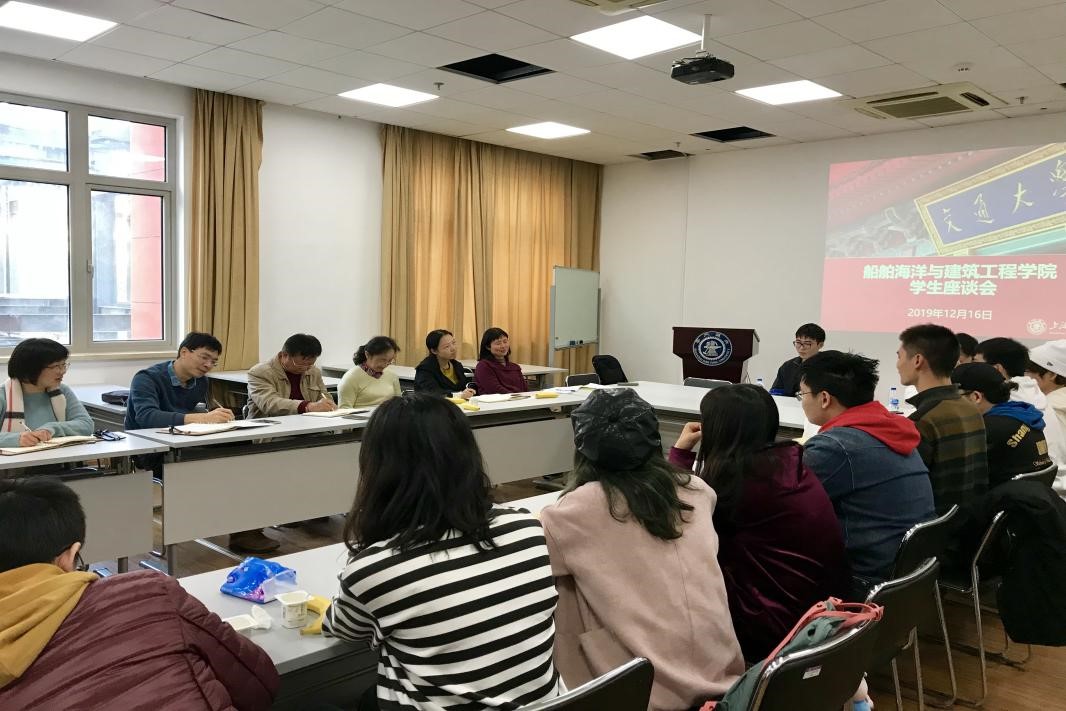 12月16日-19日,学院分别组织召开船工、力学、土木、交通专业“本科人才培养学生座谈会”。学校教学发展中心顾问高捷、学院副院长夏利娟、教学副系主任陈俐、刘铸永、程斌、尹静波,本科教改核心组成员张维竞、林志良、孙雁、宋晓冰,本科教务办主任袁敏,专业教师代表、思政教师代表、各年级学生代表以及全体教务秘书共110余人分别参加座谈。会议由教学副系主任主持。