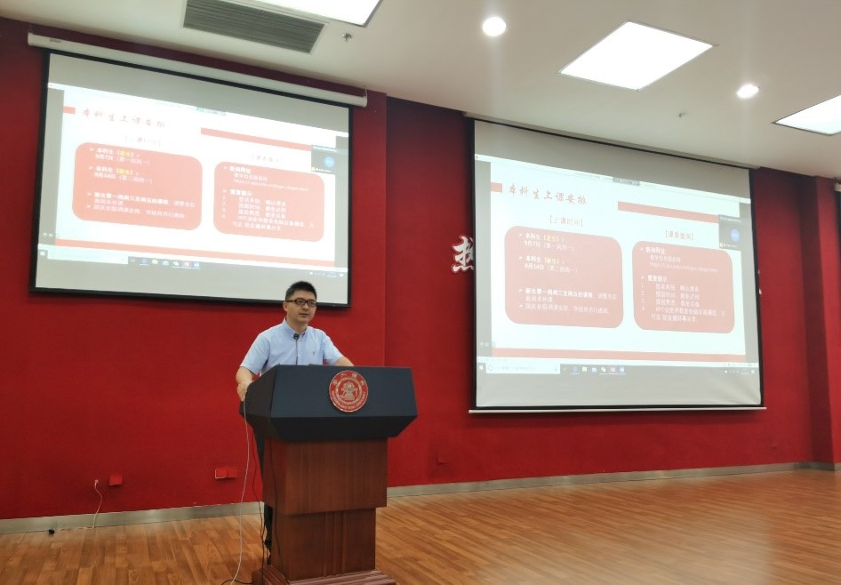 薛鸿祥介绍了2020年秋季研究生教学安排。着重强调了研究生注册报到时间与选课时间,对研究生选课进行详细说明,并对本学期研究生各专业课程安排情况作简要说明。
