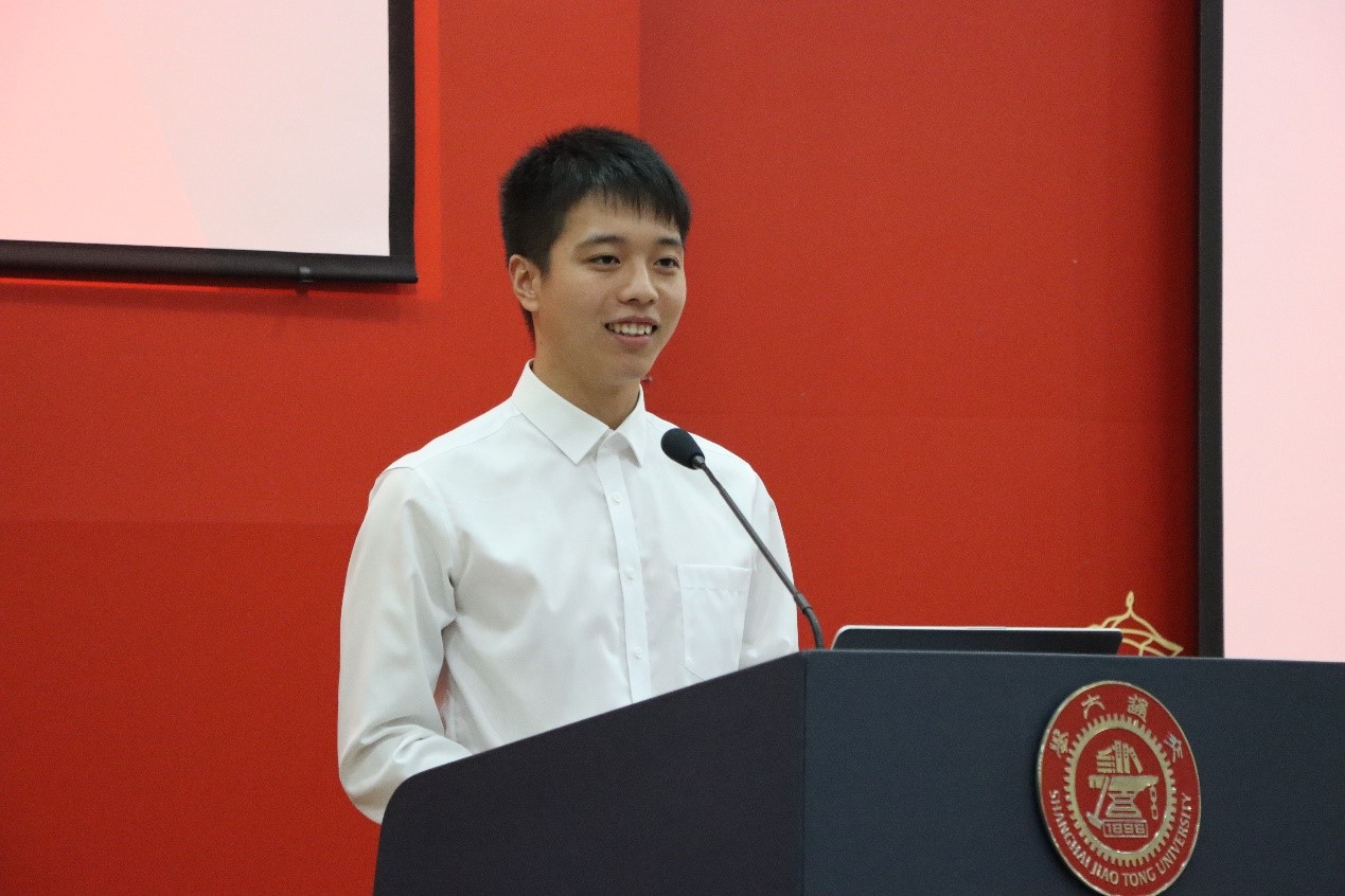 随后,2020级本科生新生代表、海洋工程类张志豪同学发言。他讲述了自己中学时期对于交大大象传媒 的向往,分享了梦想成真的喜悦,并励志要加倍努力,追随前辈们的脚步,成为能够担起时代使命的交大人。