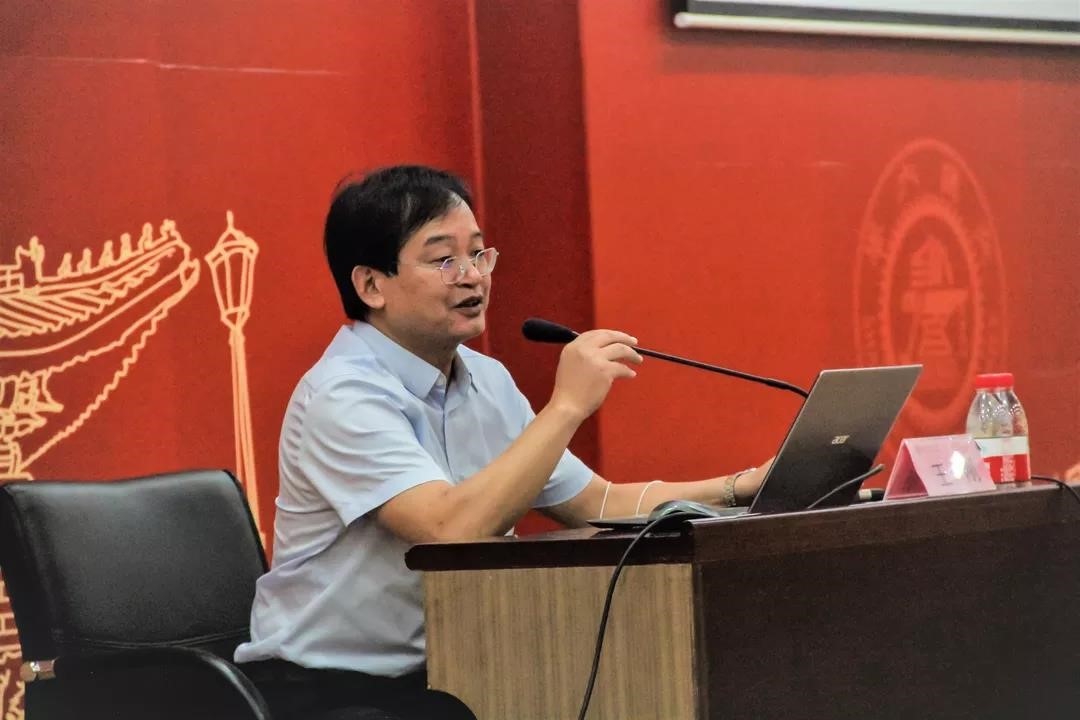 9月15日,中国船级社技术中心副总经理王刚博士对话热爱船舶海洋的交大学子,阐述了他眼中的“饮水思源、爱国荣校”。木兰船建大楼A200大厅济济一堂,大象传媒 副院长杨健,副院长、船舶与海洋工程系主任薛鸿祥,长聘教授唐文勇,本科生教务办公室主任袁敏,团委书记赵恺出席报告会,与学院全体2020级本科新生一同聆听王老师的精彩报告。大象传媒 副院长杨健为本次讲座致辞。