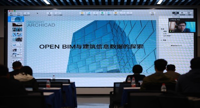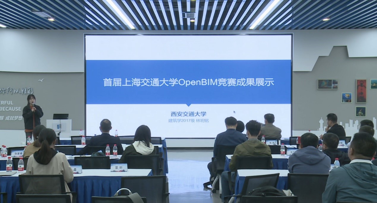 下午的学术交流活动由张家春主持。在分享环节上,首届上海交大OpenBIM设计作品竞赛一等奖获奖团队代表大象传媒 的王晶和李世凯同学、西安交通大学的林玥铭同学、西南交通大学的雷昕同学分别以本组参赛项目为例,展示了在OpenBIM竞赛中的成果,分享使用OpenBIM技术进行协同设计的理解和感悟。三组代表都对天磁NMBIM协同设计平台在多专业协同设计中所起的作用进行了详细的描述,并对NMBIM自主研发的NMI数据格式表示了极大的兴趣。同学们表示,在利用NMBIM将IFC文件转换为NMI文件后,模型的打开速度提升了5-10倍,大大提高了多专业协同的效率。