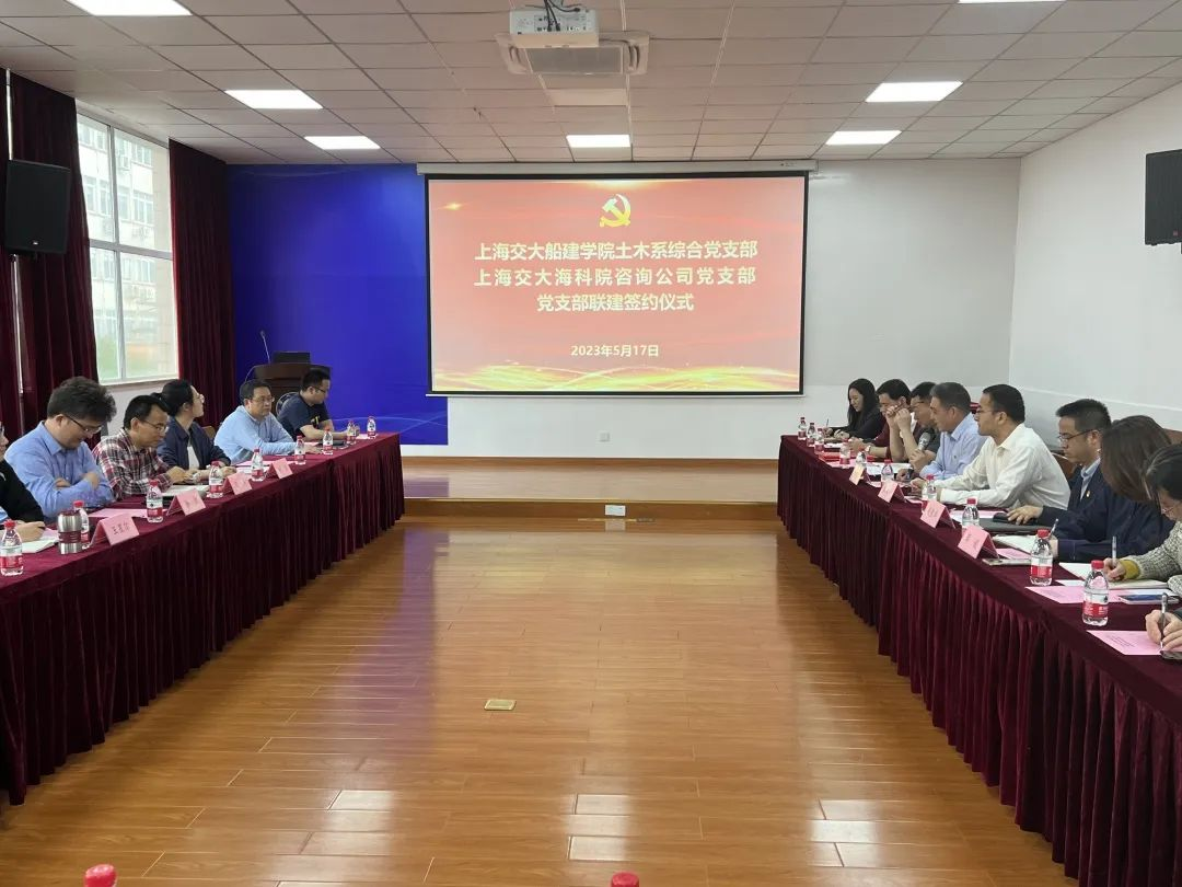 会议开始,王为民首先对上海交大大象传媒 土木系综合党支的到来表示欢迎。随后,双方分别介绍了大象传媒 土木系和海科院咨询公司情况。在双方出席人员的共同见证下,上海交大大象传媒 土木系综合党支部与海科院咨询公司党支部签署了党支部联建备忘录。以习近平新时代中国特色社会主义思想为指导,全面贯彻落实党的二十大精神,进一步加强党支部建设,着力推行党建联建模式,构建“组织联建、资源共享、文化共融、联动发力”的党建工作格局,通过党支部联建助推校企合作高质量发展。在平等互利、合作共赢的基础上,双方经友好协商,达成联建协议。
